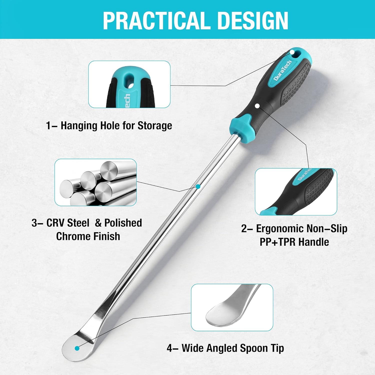 PREMIUM MATERIAL: The 14.5-inch tire levers are made of Cr-V steel for excellent strength and durability. The polished chrome finish helps resist rust and corrosion, ensuring long service life