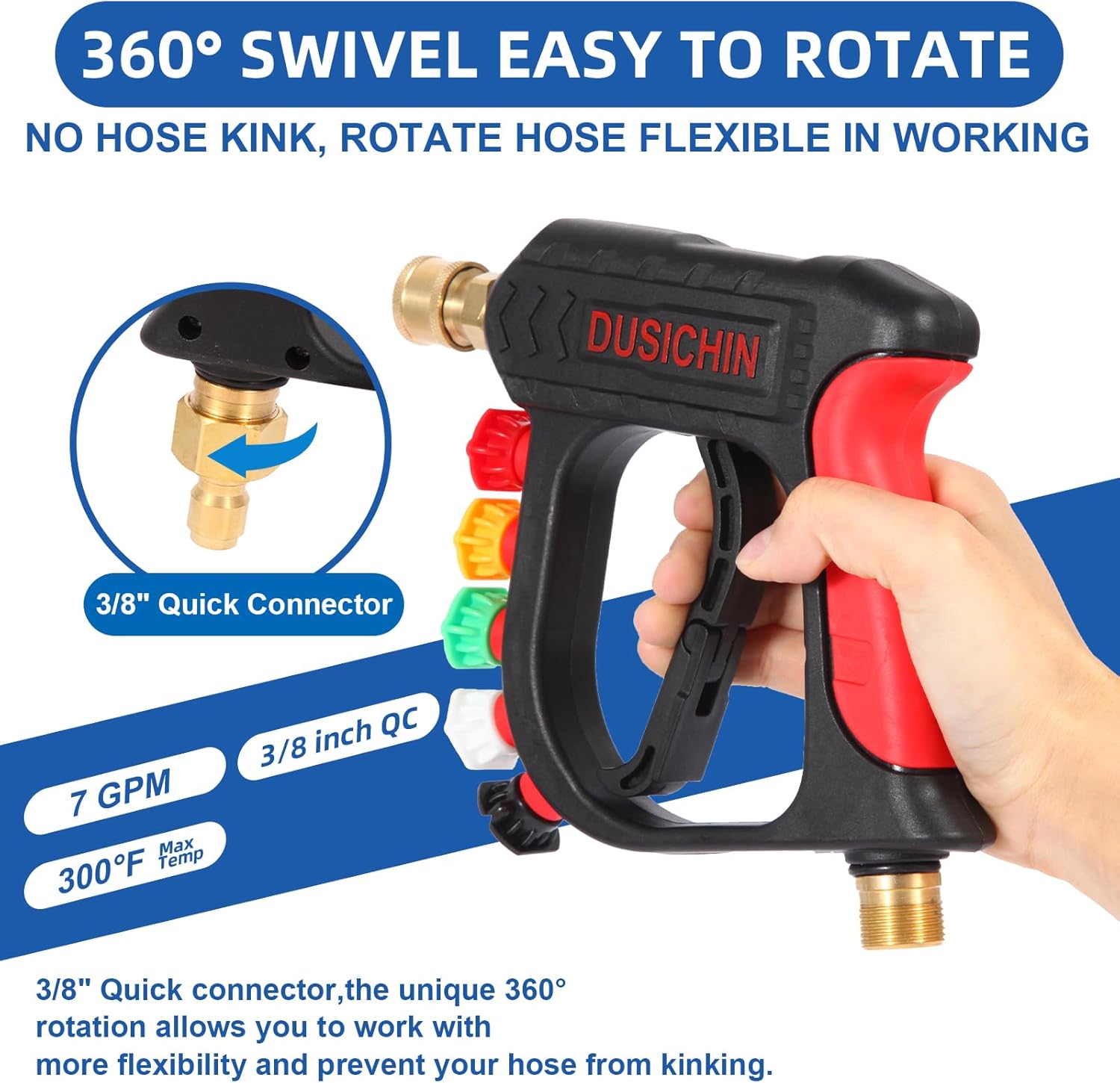 DUSICHIN Foam Cannon Short Pressure Washer Gun 1/4 Inch Quick Connector,Car Wash Foam Gun with 5 Pressure Washer Nozzle Tips 3/8” Swivel Quick Connector,Additional Orifice Nozzle 1.04mm Car Washing