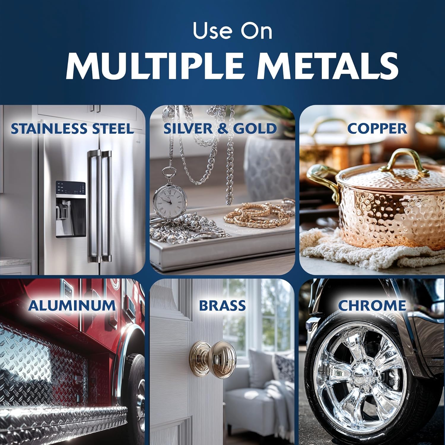 Versatile Metal Cleaner: Perfect for chrome, stainless steel, silverware, gold, brass, copper, exhaust tips, trim, and more