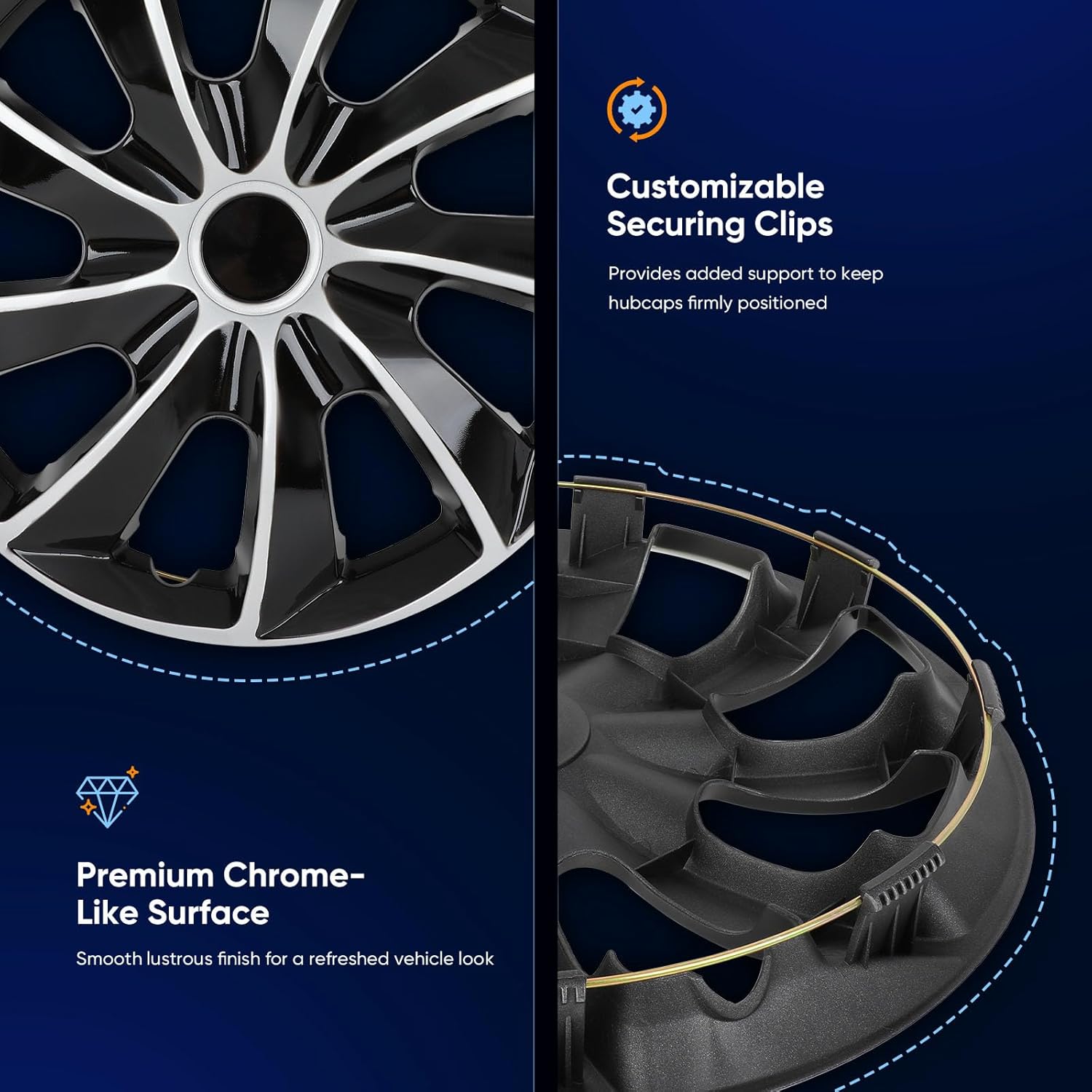 ECCPP OEM Replacement Full Lug Skin Durable-Modern & Stylish 4PC Set 15 Inch Hubcap Wheel Cover Auto Tire Replacement Exterior Cap-Snap On Hubcap