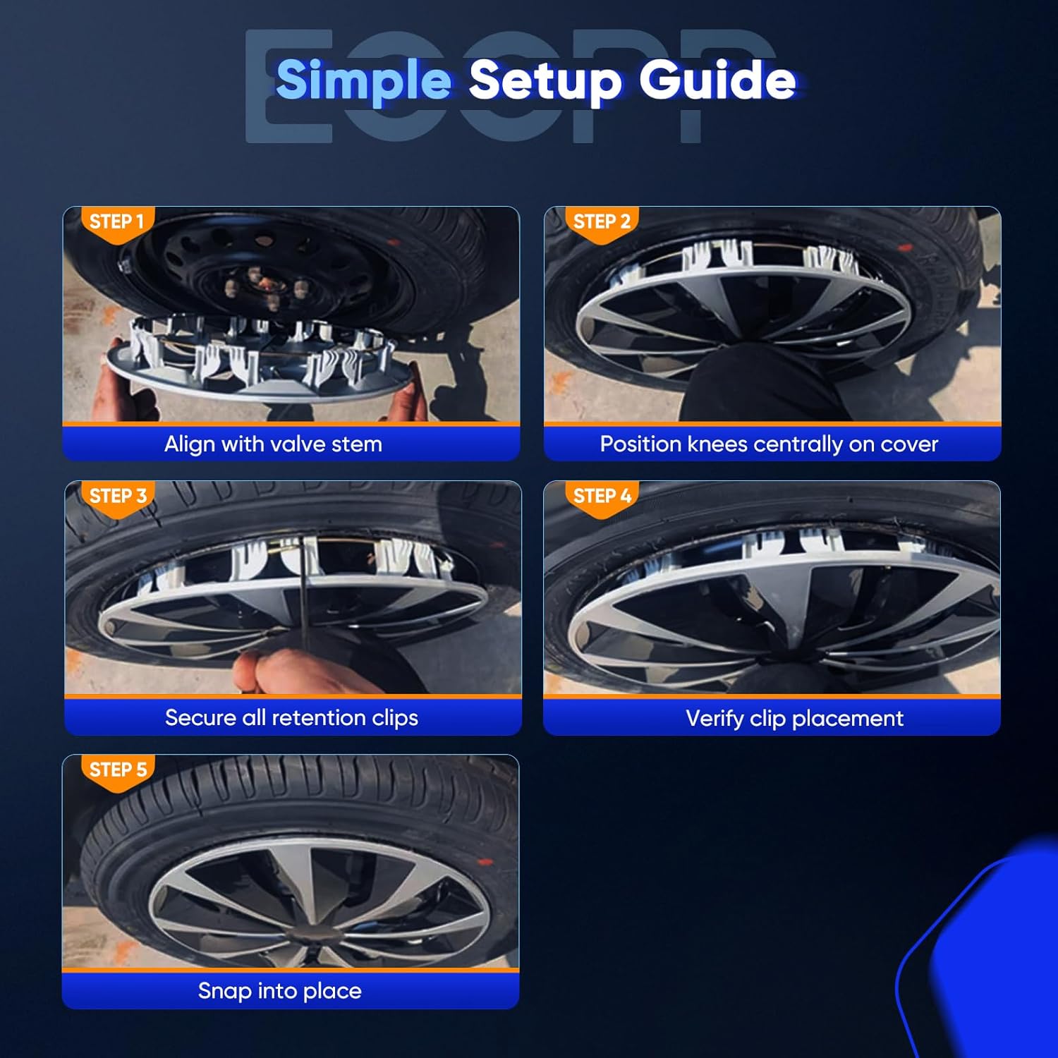 Easy to install: Installation are easy and simple, our premium hubcaps utilize spring steel ring with retention clips. They are safe to leave on for regular car wash or you may snap cover off to clean with water or regular automotive soap.
