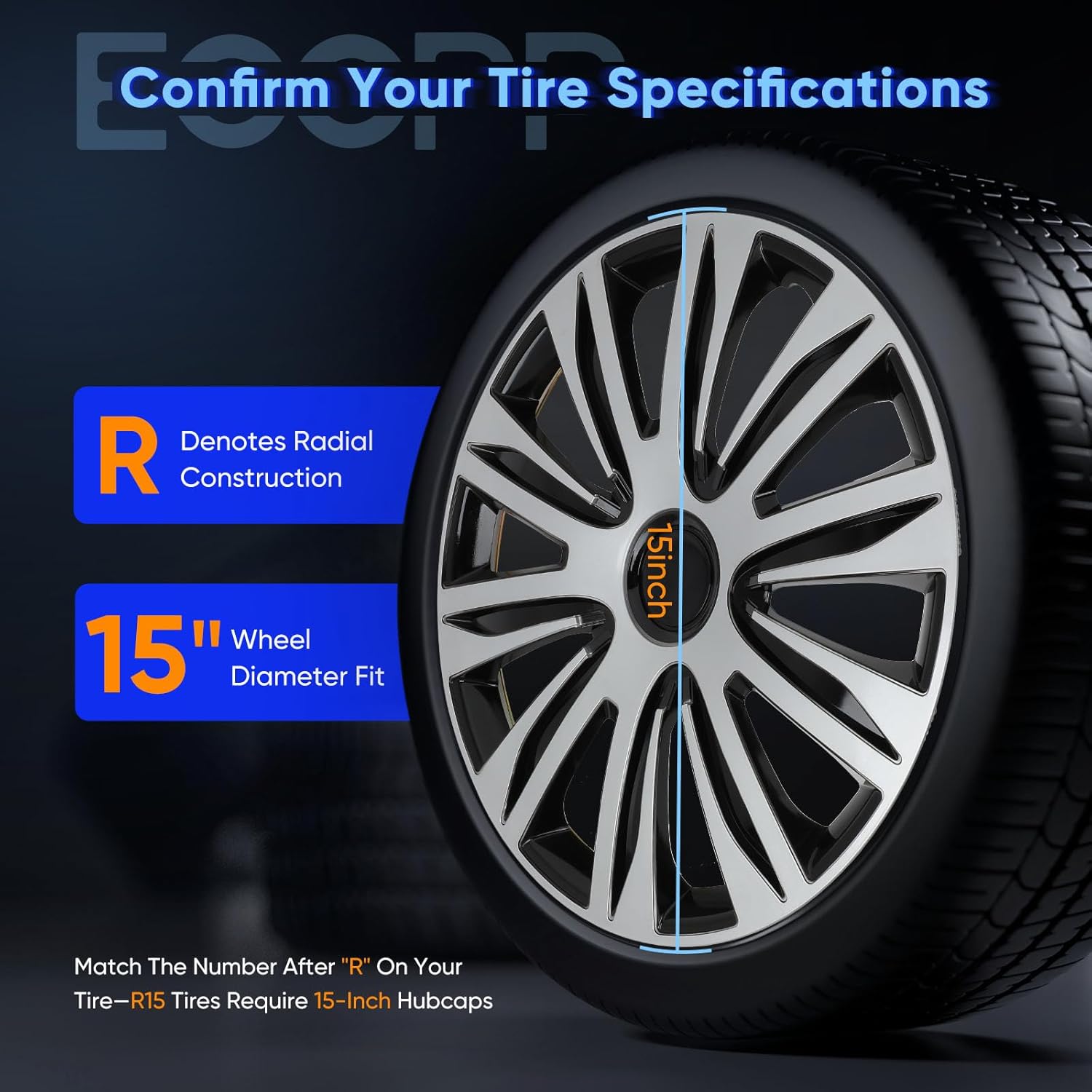 ECCPP Wheel Cover 15 Inch Hubcap Wheel Hub Caps OEM Rim Protectors Cover (Set of 4) Modern & Stylish Auto Tire Replacement Exterior Cap