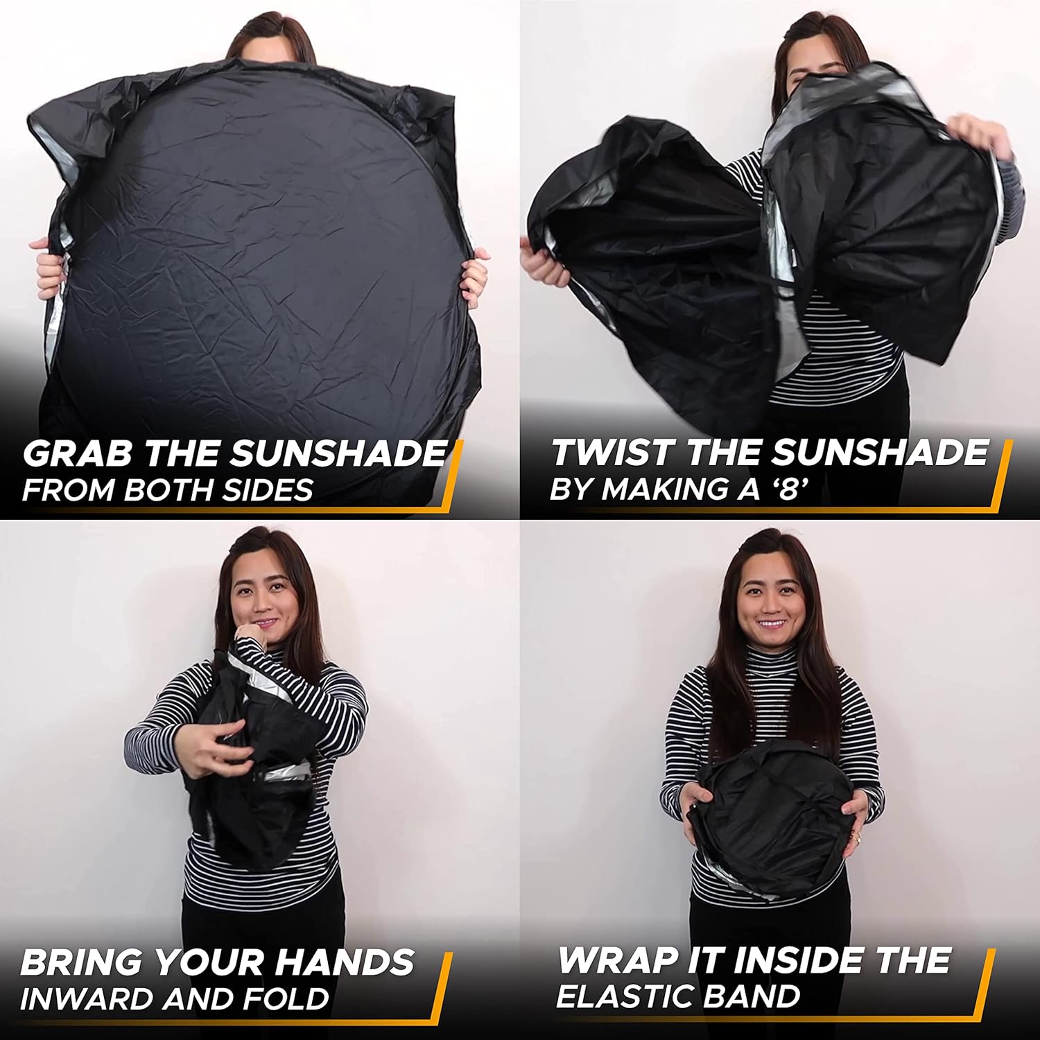 Easy to Use and Fold: Our car windshield sunshades is extremely versatile in nature; You can pop up the sunshades, install them, fold them back, and store the sunshades inside the storage pouch with ease!