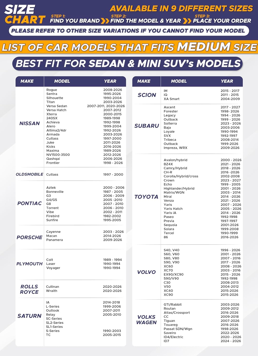 Choose the Right Fit: Available in multiple sizes, EcoNour’s shades for windows are tailored to fit various vehicle models. Refer to the size chart to pick the best car window shade for maximum protection.