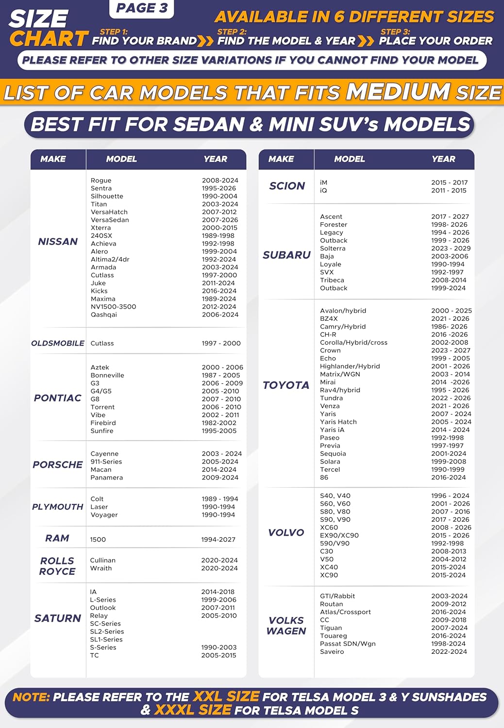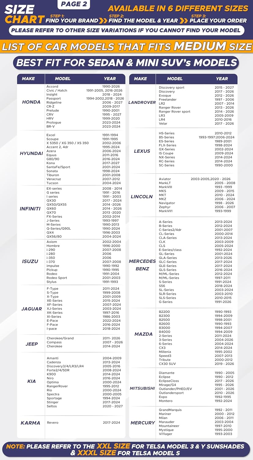 Windshield Sunshade for Medium Cars & Sedans: Provides full windshield coverage for mid-size sedans and similar vehicles, ensuring consistent sun and heat protection.