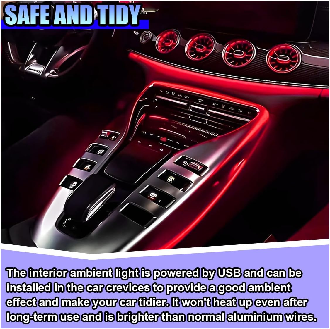 【High-Quality Material】: The car interior lights are made of high-quality flexible EL wire, which has excellent wear resistance and impact resistance, with stable performance, it ensures that the light strip maintains a good luminous effect in complex in-car environments such as high temperatures and vibrations, and can be used for a long time.