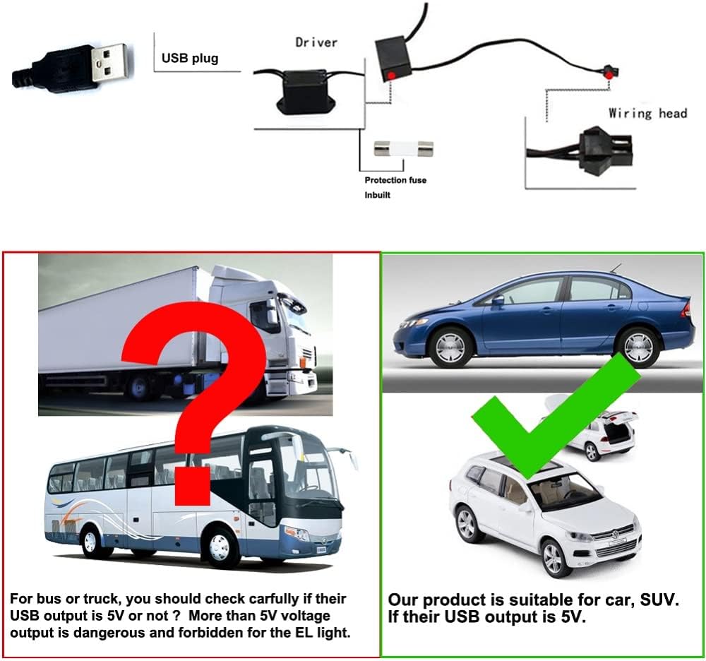 [Safe and Reliable] MaxLaxer EL wire comes equipped with a fuse in the black box controller, ensuring safe use. It guarantees driving safety while adding style and sophistication.