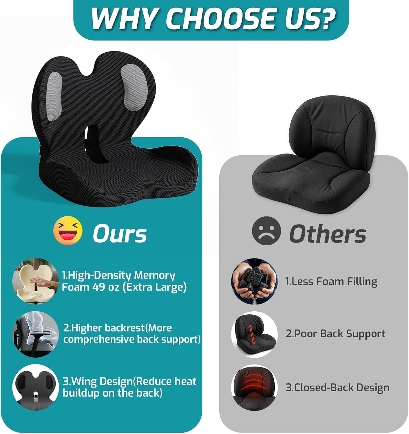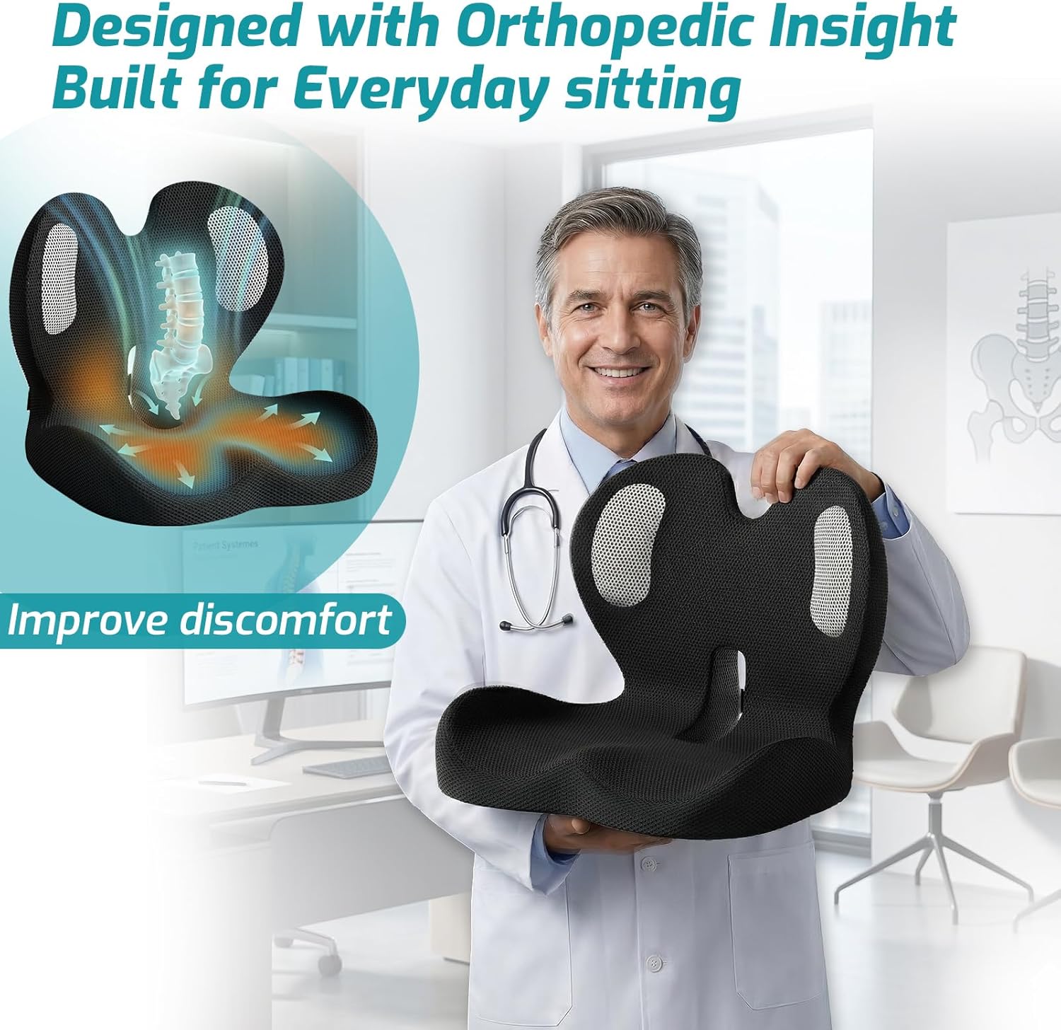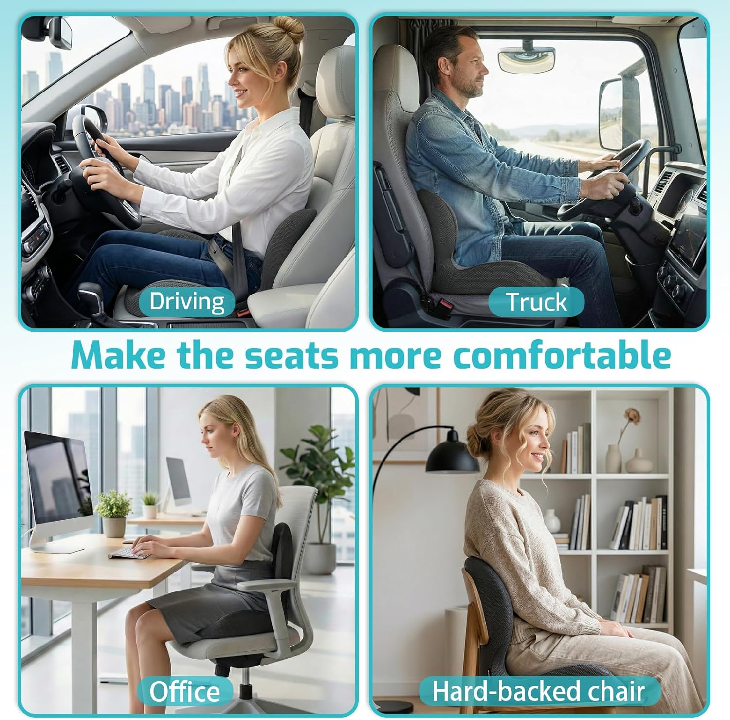 Ergonomically Built for Everyday Sitting: Designed with input from orthopedic specialists, our cushion prioritizes ergonomic support. The lumbar support features sculpted wing sides to enhance posture and relieve pressure on your hips, tailbone, and lower back—perfect for long drives, extended office hours