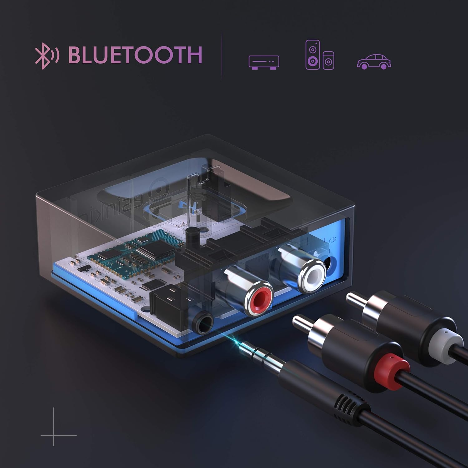 Works with most speakers: Plug the adapter into any A/V receivers and any powered speakers using standard RCA or 3.5mm jacks. This adater with AC plug and USB power cable, also can use for car audio system.