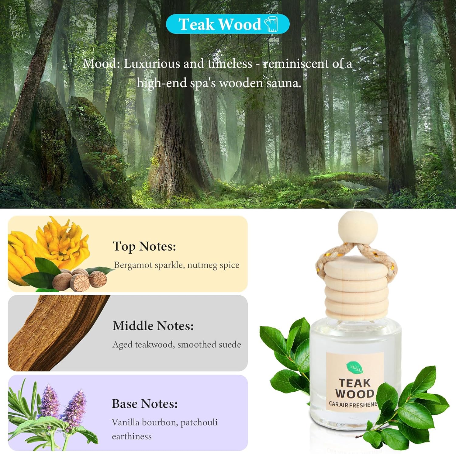 🌿 2-SCENT PREMIUM COLLECTION: Elevate your daily commute. This 2-pack features our curated nature-inspired fragrances: the warm, earthy Teakwood, and the cool, sophisticated Midnight Frost (a refreshing, masculine aquatic blend). Perfect for alternating scents or outfitting multiple vehicles.
