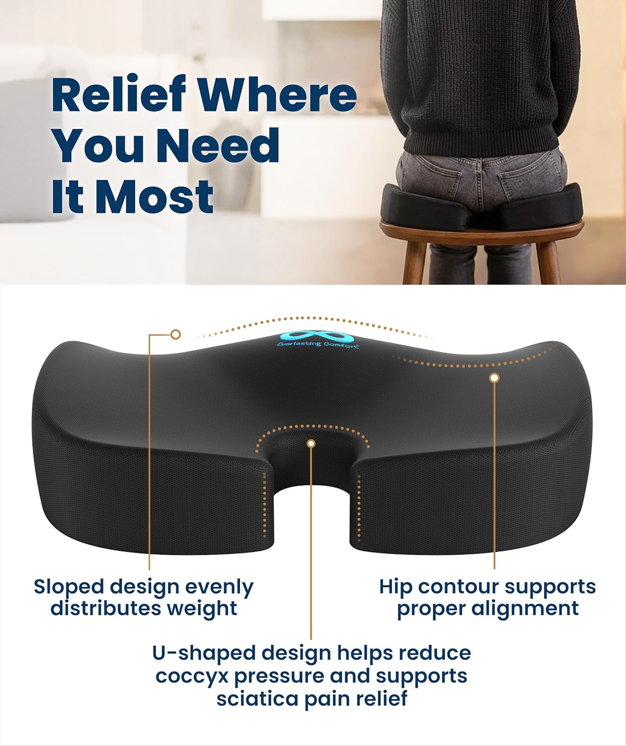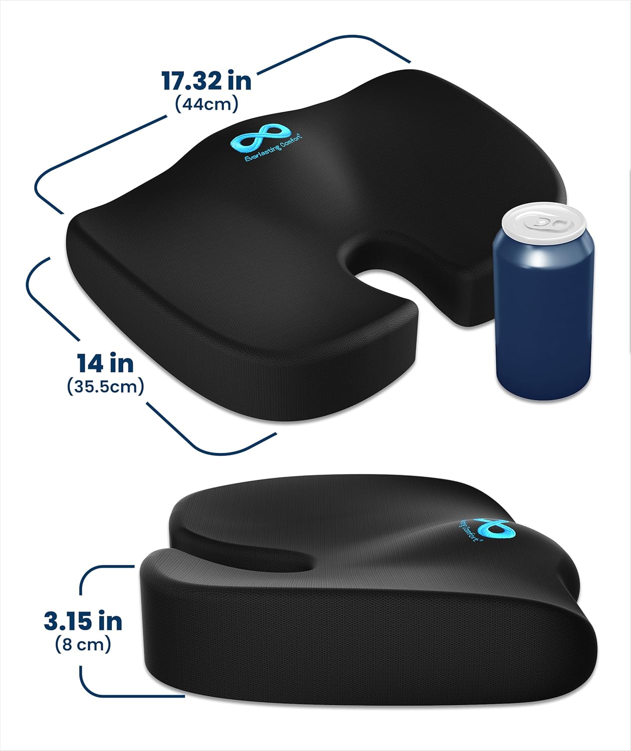 Everlasting Comfort Doctor Recommended Memory Foam Seat Cushion for Office Chairs & Car – Ergonomic Office Desk Accessories – Cushions for Tailbone Pain Relief, Sciatica (Black, Large)
