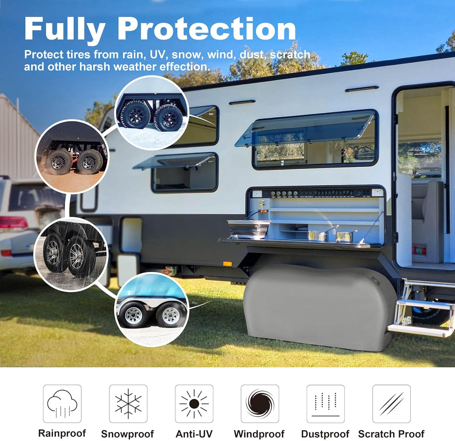 Fully Protection – It’s a perfect all-season cover, 2 tire covers for trailer in 1 set. Protects tires and wheels from sun damage, rust, and dirt when your vehicle is parked. And the tire cover is easy to clean, wipe only with clean water.