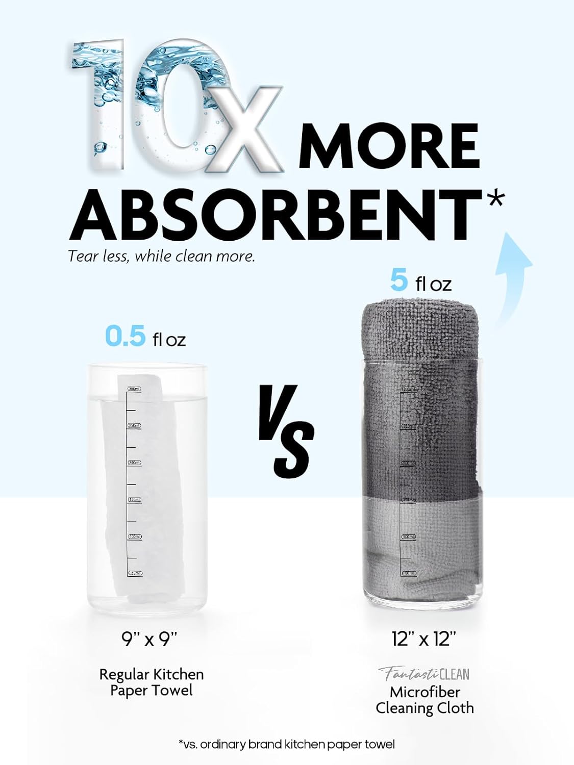 [Exceptional Absorption] Handle any spill, wet or dry. The cloths can absorb up to 5 times their weight in water, capturing more dirt and drying quicker than conventional towels, while staying odorless
