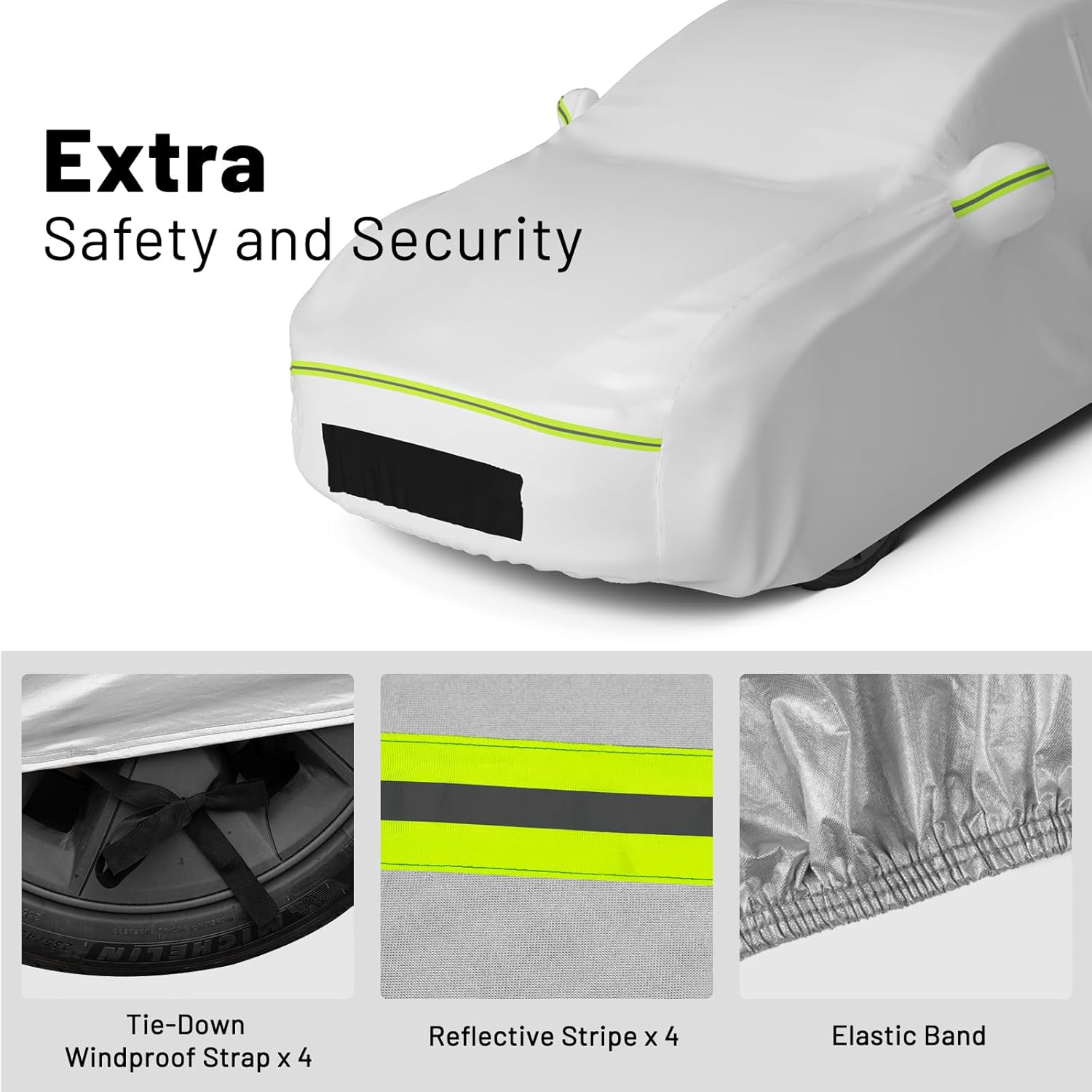 【Windproof Design】- Elastic cord at bottom of the model y cover will provide a better fit to your car, and 4 securing straps underneath, keeps your car in place even in windy days.There are also two extra-long straps for the hood and rear wind protection.