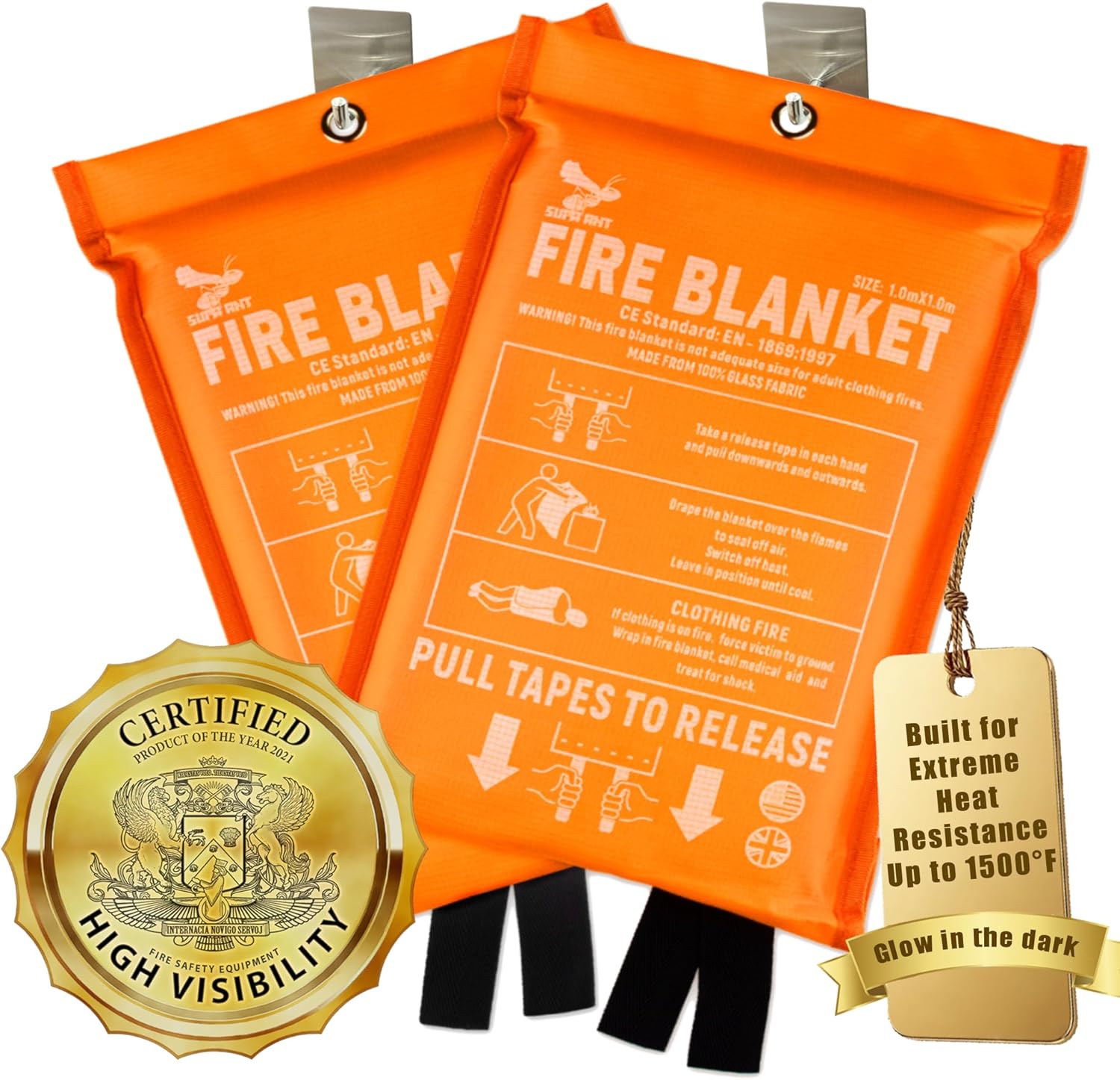 The ultimate fire safety kit : This fiberglass fire blankets set comes with 2 heavy duty fire proof blanket in glow in the dark storage bags and 2 high quality adhesive fire blanket hook. weather you use it as a kitchen stove fire blanket or fire mat, fire pit blanket, or even as a fire towel, Fire Retardant Blanket or fireproof cloth cape to escape fire, Supa Ant fire blanket is all you need!