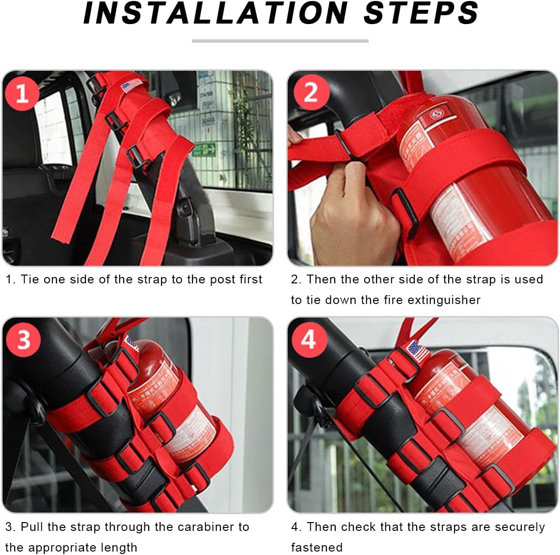 Wide Compatibility: Equipped with adjustable buckles, this fire extinguisher holder fits most vehicle models, including Wrangler, JL, YJ, TJ, JK, CJ, JKU, JLU, and more. It can be easily installed under seats, trunks, and other locations without occupying valuable space in your vehicle