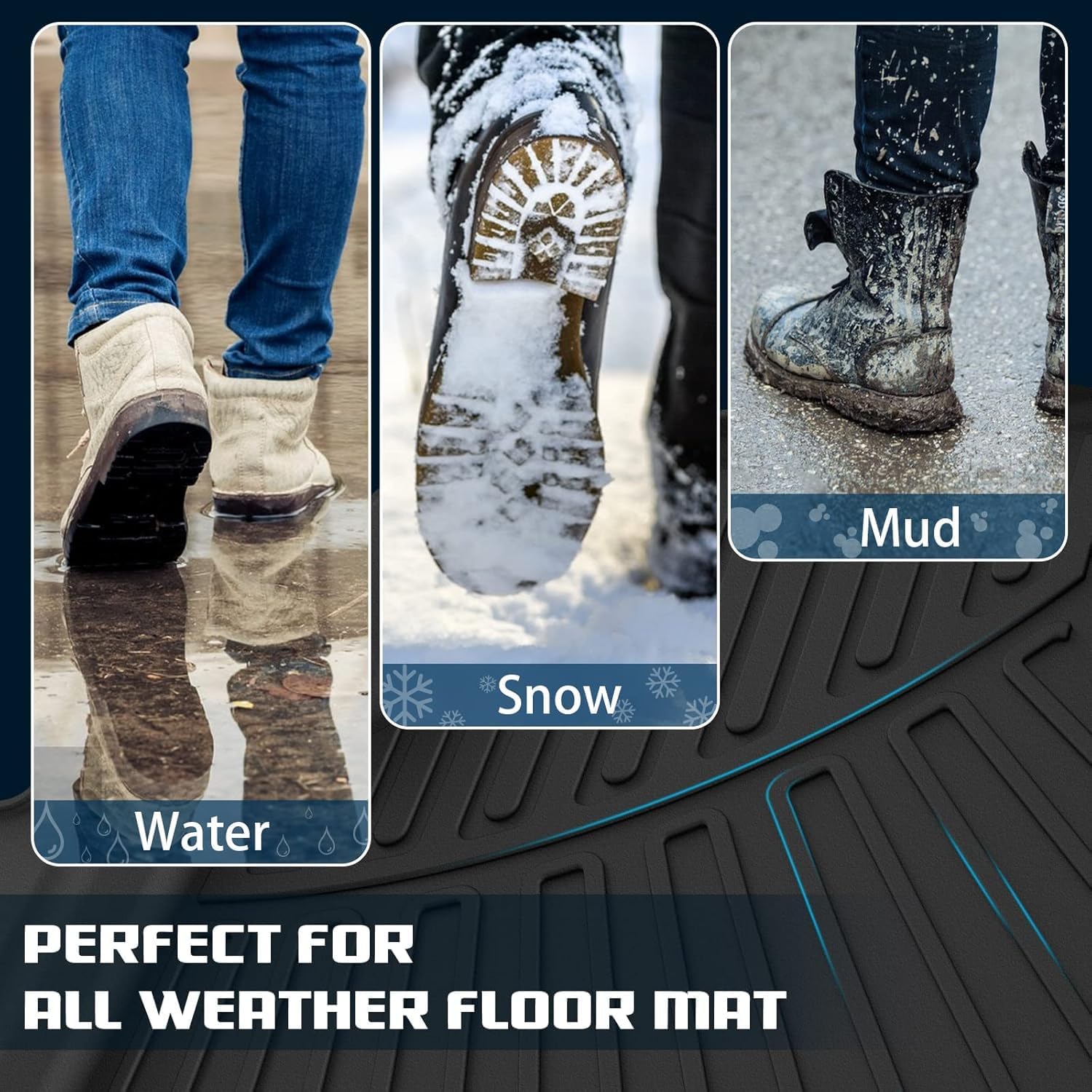 BUILT FOR DURABILITY: The all weather floor mats for honda pilot 2023 2024 2025 are made of TPE materials featuring waterproof, wear-resistant, non-slip and odorless. High tensity and safe TPE material keeps its flexibility in all season while still offering an excellent feel and extreme wear resistance