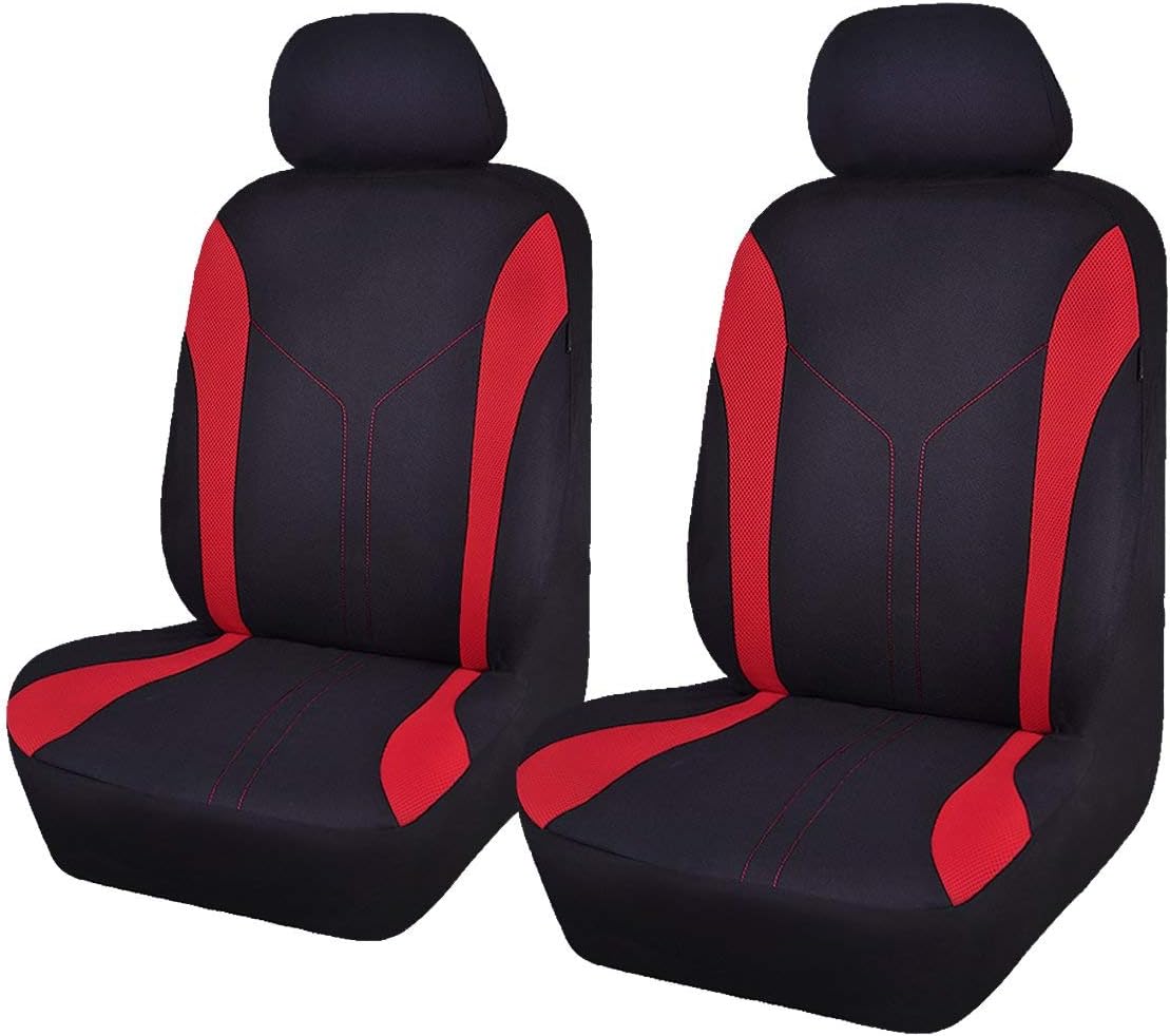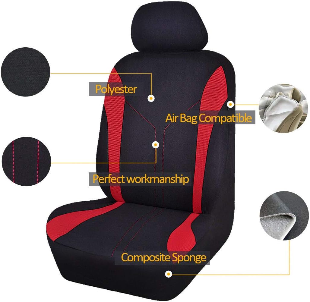 Flying Banner Car Seat Covers Front Seats and Rear Bench Mesh Fabric Rear Bench Split Polyester Cover Easy Installation SUV CAR Woman Lady Femal (Front Set, Black Red)