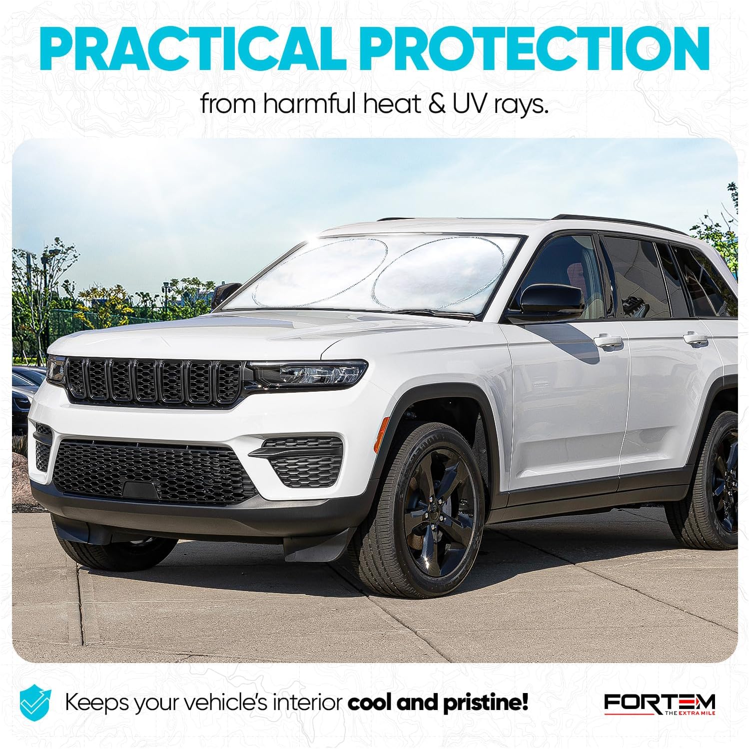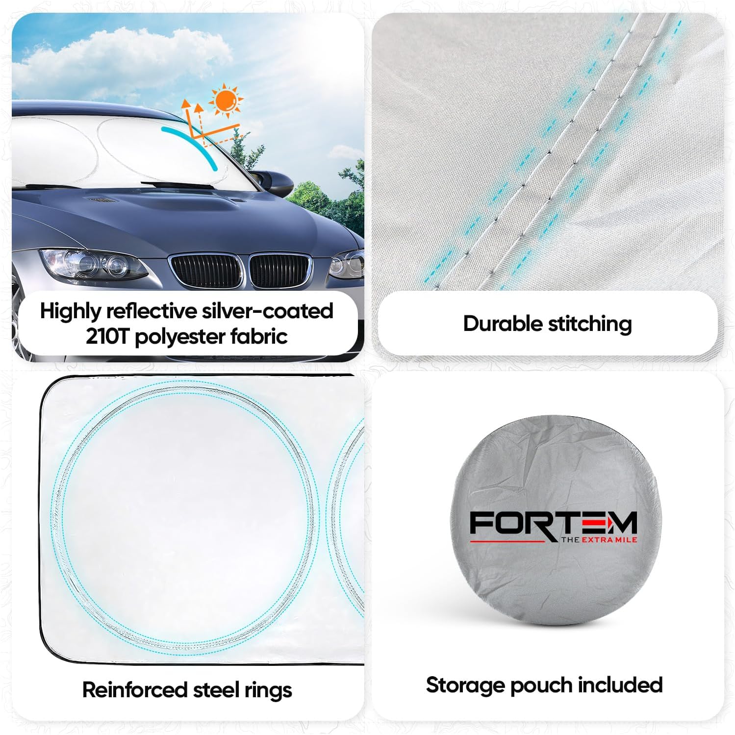 One Year Warranty – Keep your cool knowing Fortem Automotive windshield sunshades are covered for a full year.