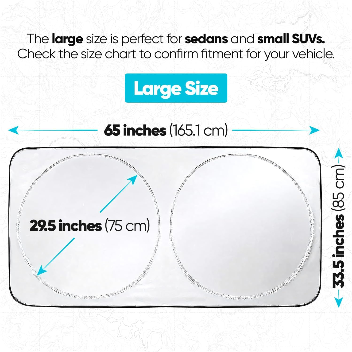 Multiple Sizes – This Sun shade car windshield is available in three 3 different sizes: Standard, large and extra large. The size range will fit a wide range of Truck, SUV and Sedan models.