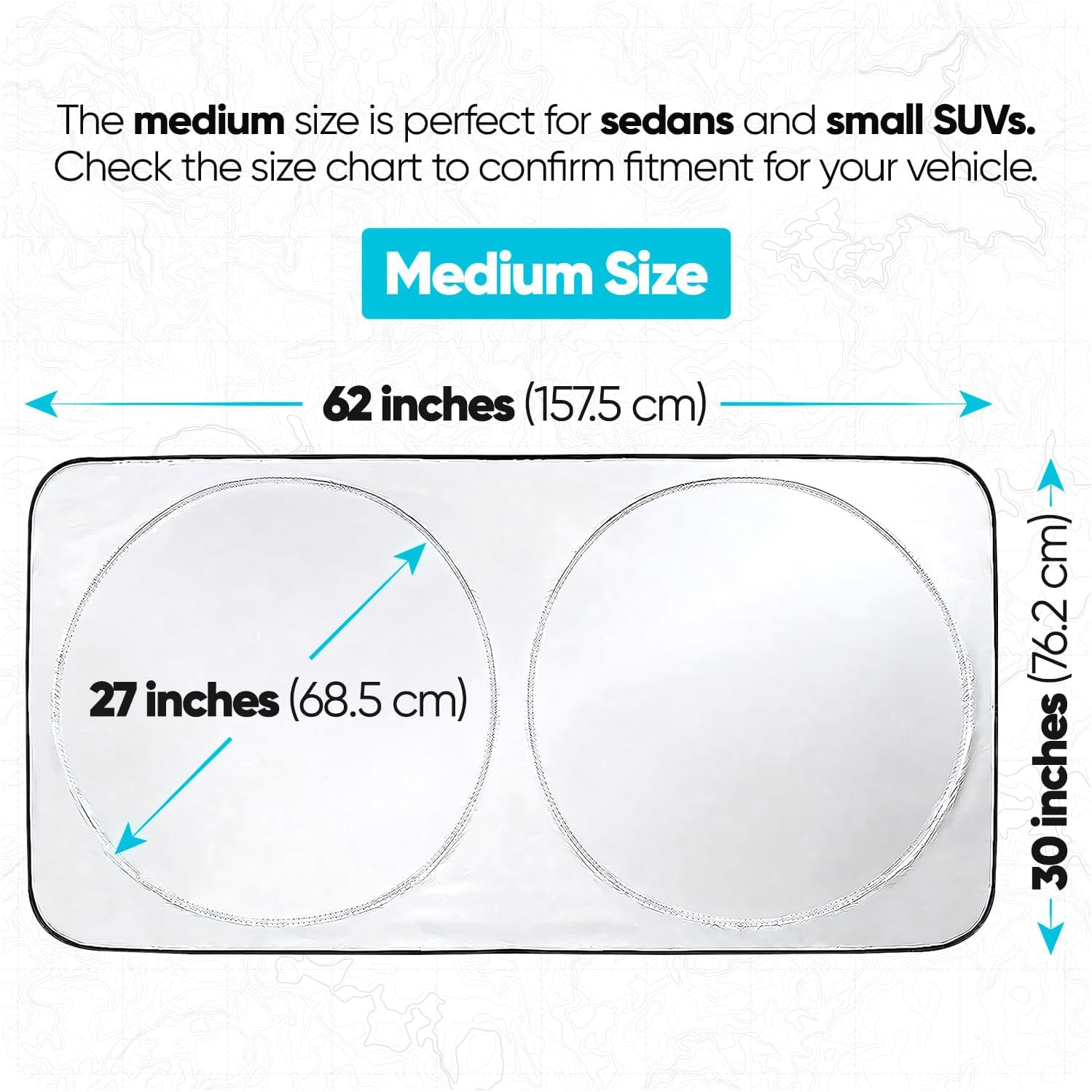 Multiple Sizes – This Sun shade car windshield is available in three 3 different sizes: Standard, large and extra large. The size range will fit a wide range of Truck, SUV and Sedan models.