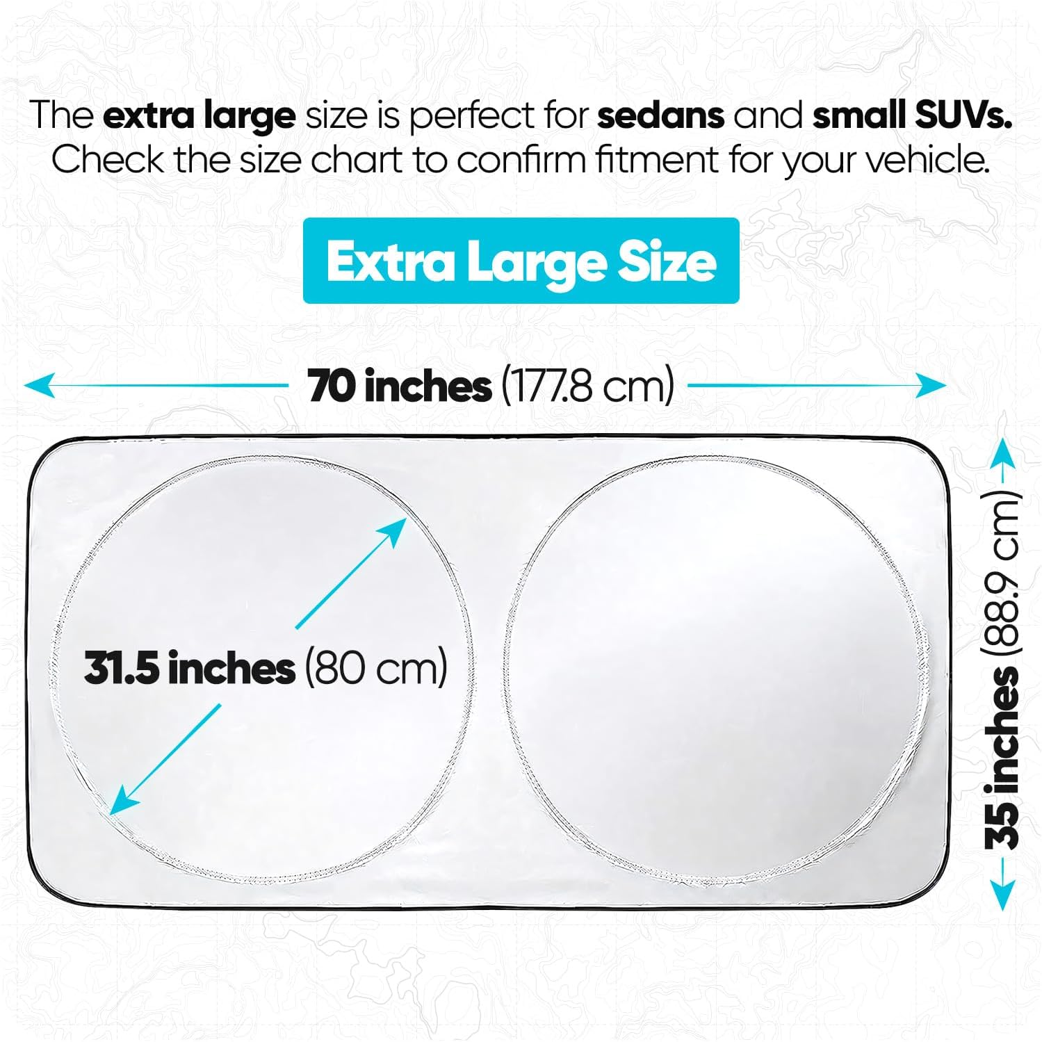 Multiple Sizes – This Sun shade car windshield is available in three 3 different sizes: Standard, large and extra large. The wide size range will fit a wide range of Truck, SUV and Sedan models.