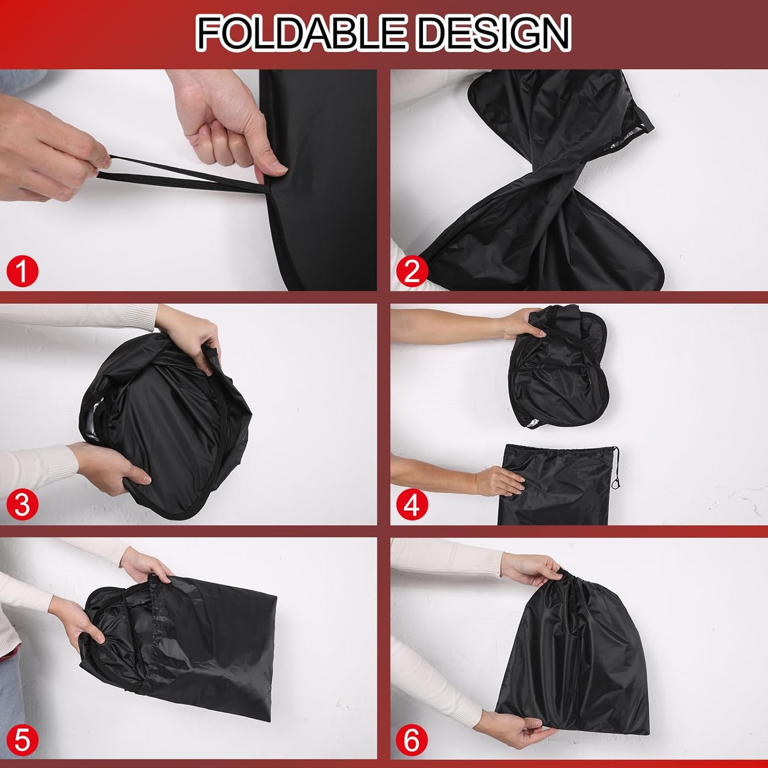 HIGH QUALITY MATERIAL: The front windshield sun shade is made of high-quality 210T polyester fabric materials, Which is denser and not easy to wear, It has excellent durability and sun protection, Which can effectively shade and insulate the sun, Providing long-lasting and effective protection for your windshield. With elastic memory steel wire, never deform, easy to store when not use.