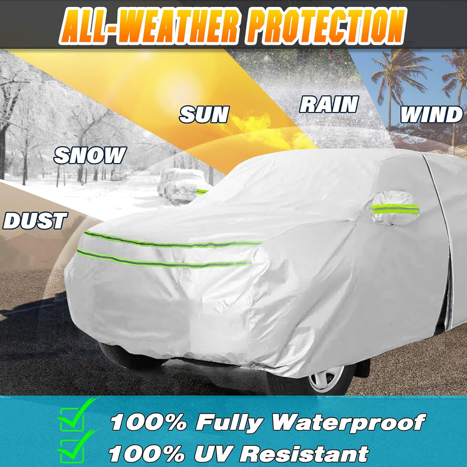 5 reviews for Full Surround All Weather Car Cover Universal Fit for SUVs Body Length 215″-236″, Waterproof Snow Proof UV Proof Scratch Proof Bird Proof Excrement with Zipper Cotton -Silvery