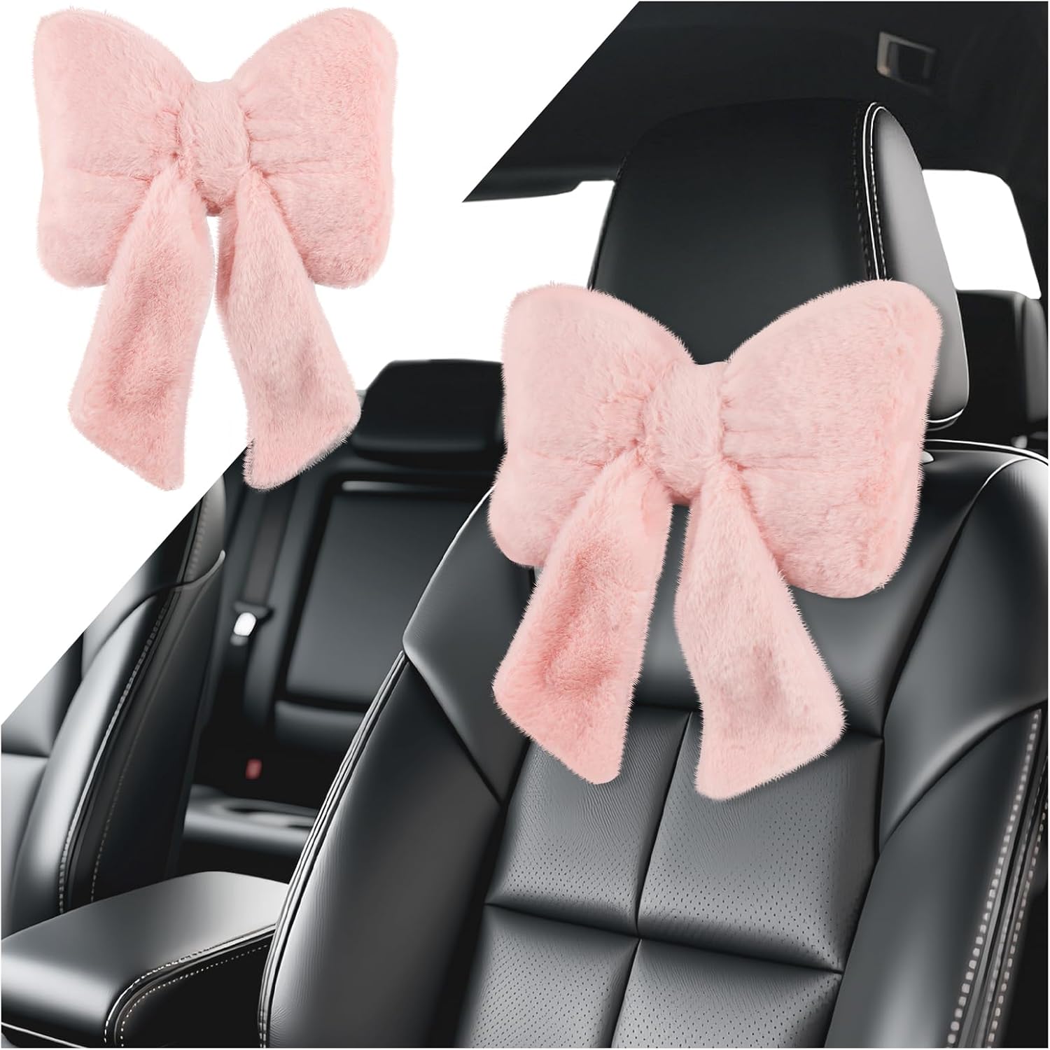 BOW STYLING: Our car seat neck pillow features a super cute bow design with a beautifully flowing strap that drapes around it, making it sporty and playful and instantly brightening up the interior of your car. Available in two fresh colors: white and pink