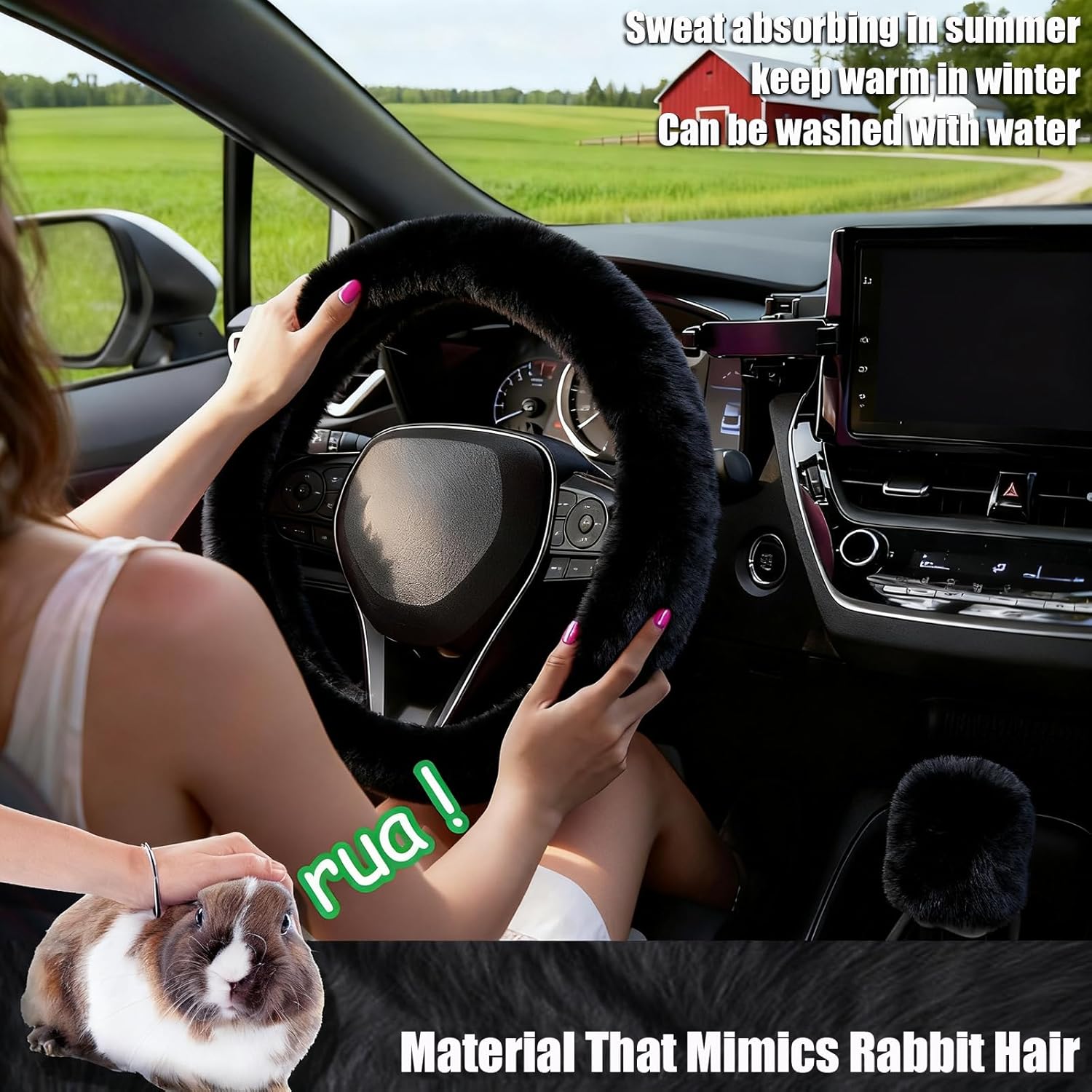 Luxurious Comfort: Crafted from premium faux wool, our fuzzy steering wheel cover offers unparalleled comfort, warmth, and sweat absorption, ensuring a cozy driving experience even in winter.