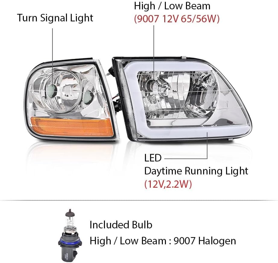 COMPATIBILITY:Compatible with Ford Expedition Models Only 1997-2002, Compatible with 1998-2003 Ford F150 Models Only/2004 F150 Heritage Models Only/1997 F150 Truck (Built After 07/01/1996 Production Date), Compatible with 1998-1999 Ford F250 Light Duty Models Only/1997 F250 Light Duty (Built After 07/01/1996 Production Date). NOTE: When installing, please check that the bulb sockets are tightly connected to the rubber cap and rubber seal. w/ 9007 bulb.