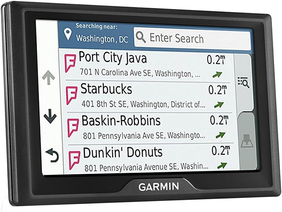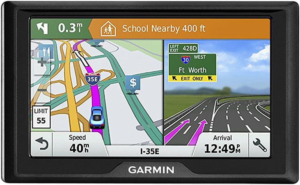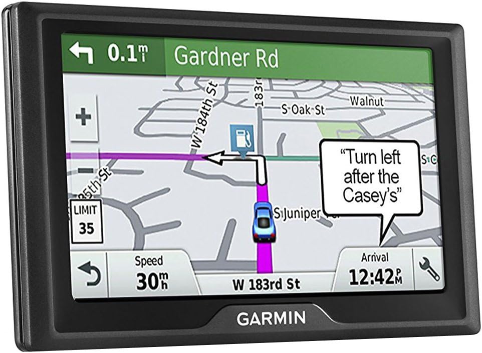 Dedicated GPS Navigator with Driver Alerts Easy-to-use dedicated GPS navigator with bright 5.0-inch dual-orientation display Preloaded with lifetime maps of the U.S. Driver alerts for dangerous curves, speed changes, speed cameras, railroad crossings, animal crossings and more TripAdvisor ratings for travel points of interest (POIs) such as hotels, restaurants and attractions Garmin Real Directions feature guides like a friend, using recognizable landmarks, buildings and traffic lights Wherever you’re going, have a smoother trip with Garmin Drive. This dedicated GPS navigator includes innovative driver alerts to help increase your situational awareness and preloaded travel points of interest from TripAdvisor to help find everything you need along the way. The future is on your Garmin. Just look ahead and drive. Driver Alerts: Know Your Surroundings To encourage safer driving and increase situational awareness, Garmin Drive provides driver alerts for sharp curves, speed changes, railroad crossings and animal crossings. Additionally, the navigator will warn you when driving the wrong way on a one-way street and alert you to nearby schools and school zones. Receive notifications for nearby red light cameras and speed cameras, and even get fatigue warnings that suggest potential rest areas after several hours of driving. Pair With Your Smartwatch What’s more, your nagivator wirelessly pairs with any Garmin Connect-compatible smartwatch (sold separately). After they’re paired, y…