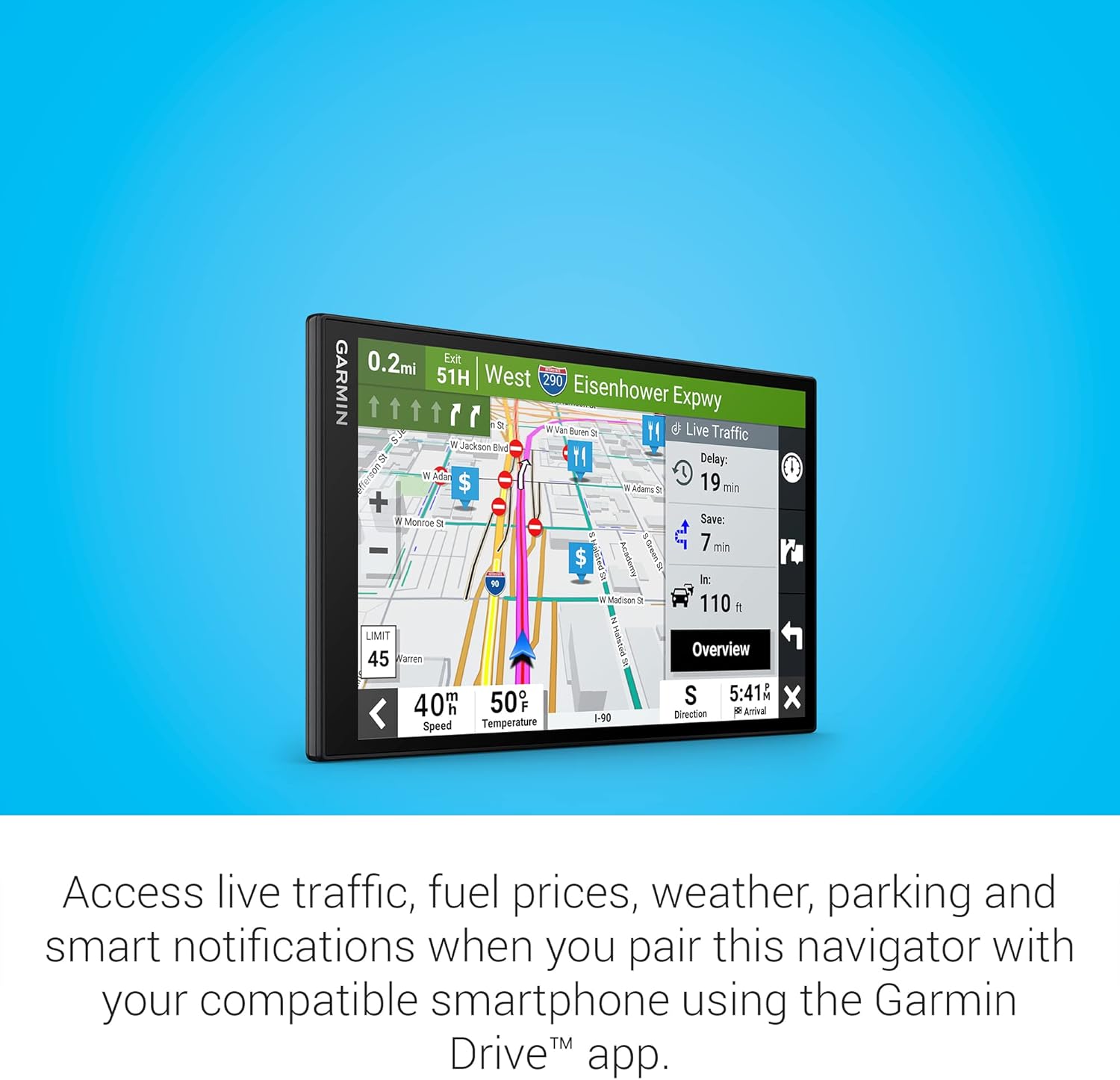 Access live traffic, fuel prices, weather, parking and smart notifications when you pair this navigator with your compatible smartphone running the Garmin Drive app