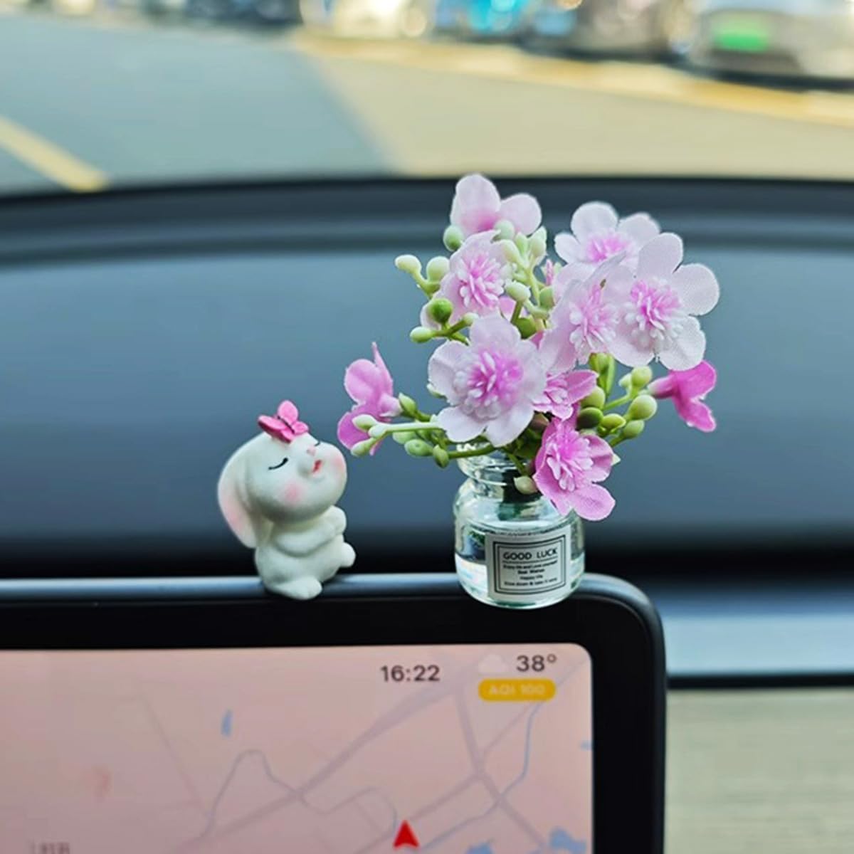 *These cute mini bunny and daisy flower vase car rearview mirror ornaments are perfect for adding a touch of spring and summer to your car’s interior.