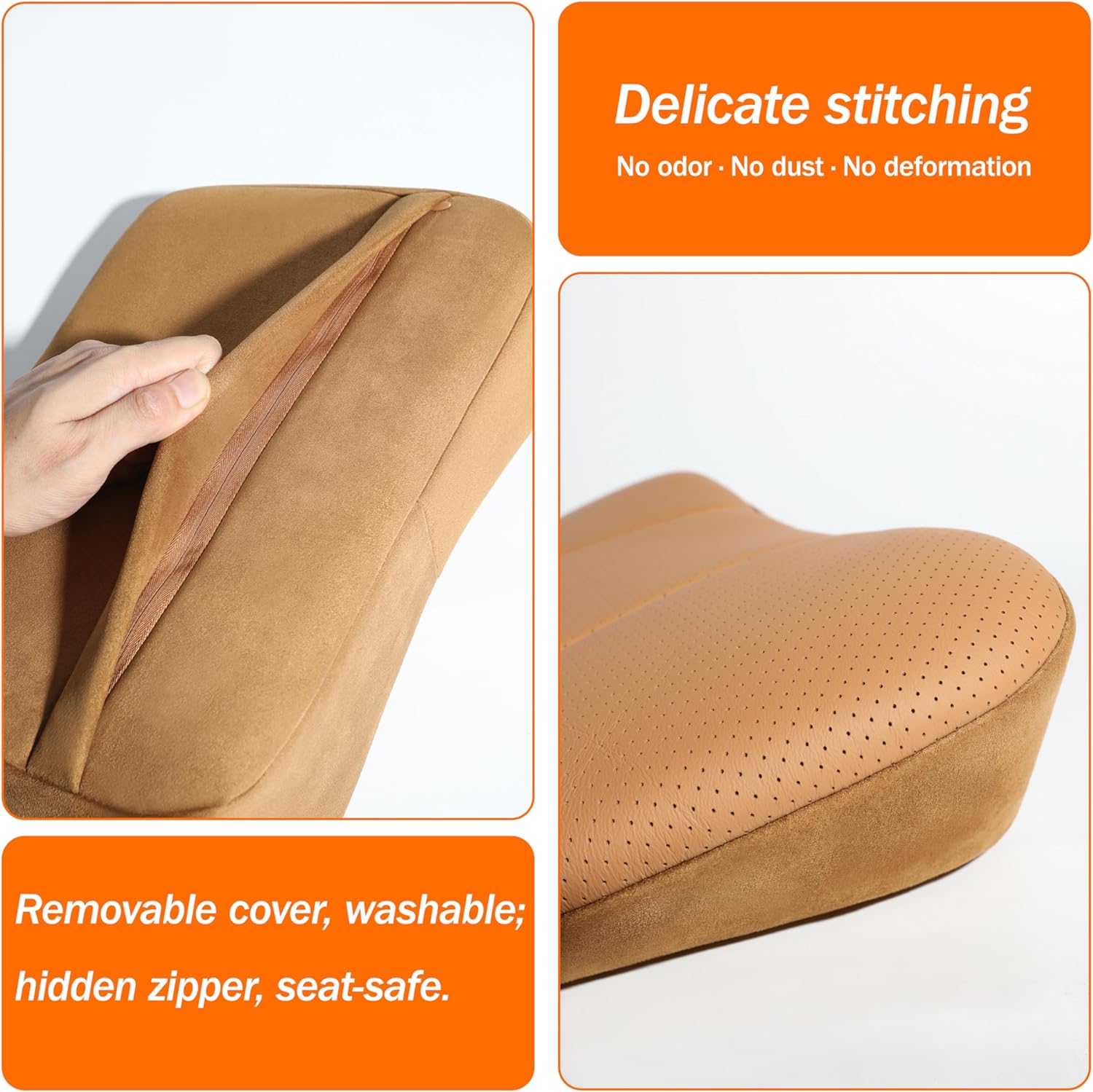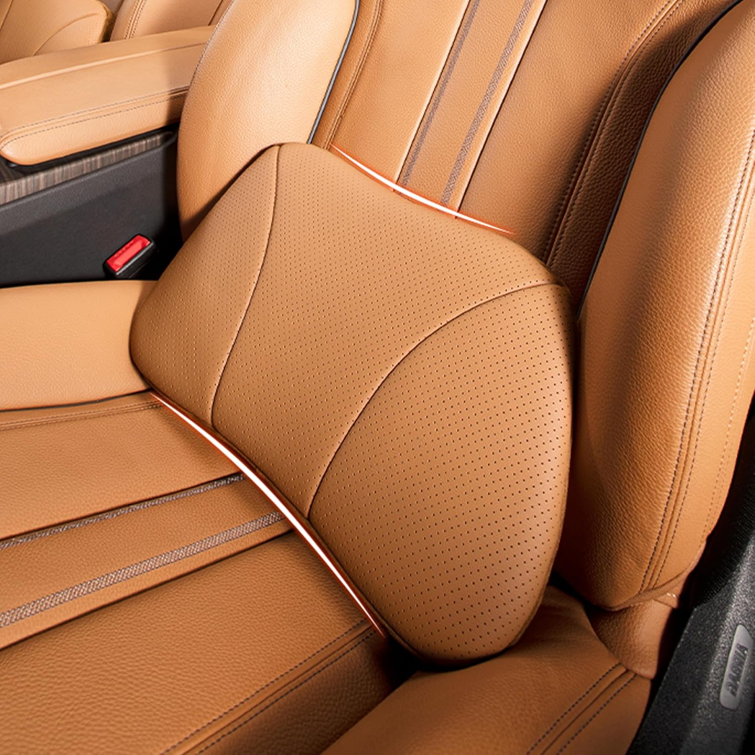 Love the leather but the foam seems to be very stiff and pushes you off the seat a good bit. Even other people I’ve had try it out in my car were not happy with how hard the foam felt and would inflate after a while continuing to push you off the seat and sometimes into the dash. I love the pillow but I can’t use it for longer than an hour before I notice myself slipping off the car seat.
