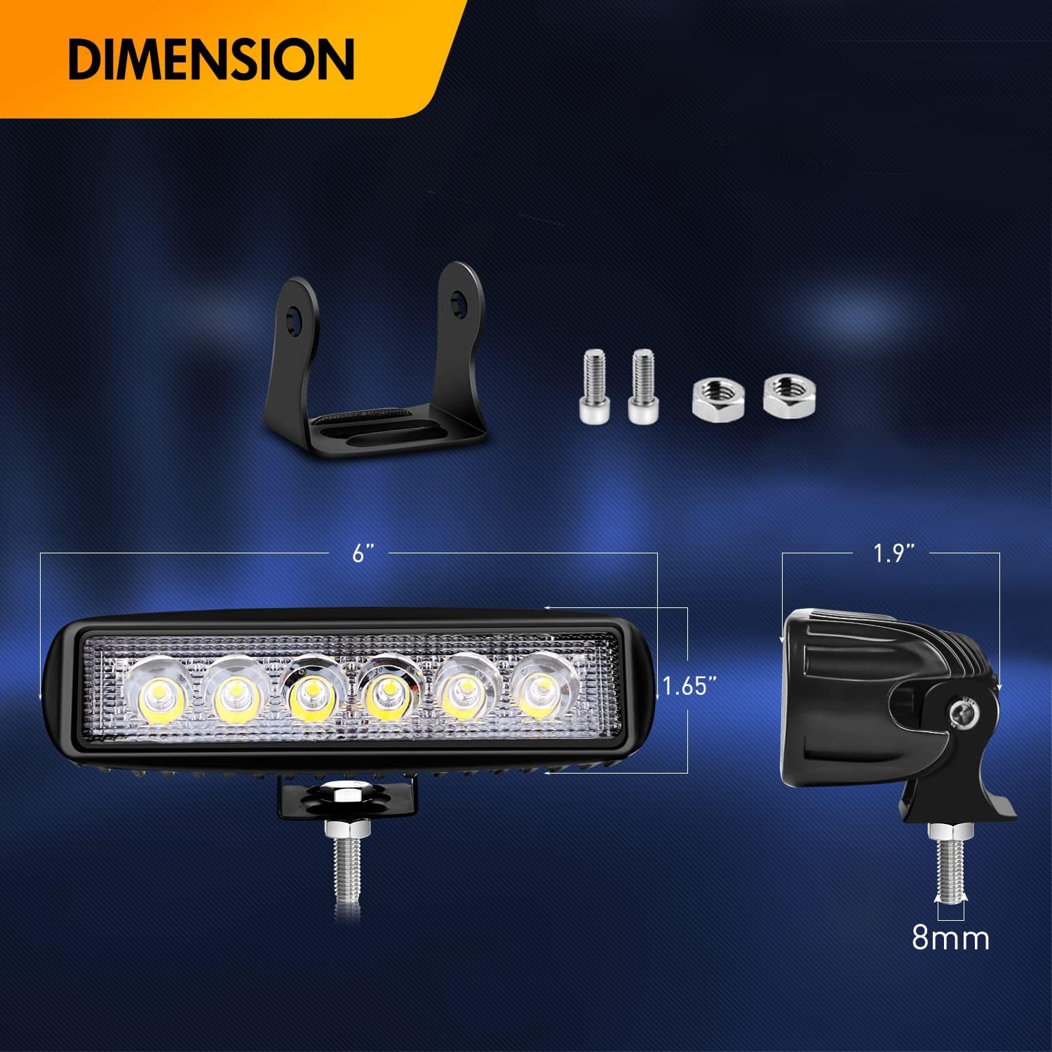 Specifications: Beam Pattern: Spot Beam LED Power: 18W (6 x 3W High Intensity LED) Input Voltage: 9-30V DC (fits 12V, 24V vehicles). Working Lifespan: Over 30,000 hours. LED Color Temperature: Pure White 6000K-6500K Material: 6063 Aluminum Alloy Profile, High quality Led Chips, PC Lens. Maximum Wattage: 180W, Max Ampere: 15A; Operating Voltage: 12V DC Power Wiring Harness Kit-2 Leads: 12ft wiring harness, 2 sets of power connectors to light fixtures Many indoor and outdoor applications: Indoor lighting: It can be used as home lighting such as Garden, Backyard, Garage, Indoor Lighting, but remember to use a voltage transformer/converter to convert the AC 110-120V to DC 12V for indoor use. outdoor lighting: It can be used as Off Road Lighting such as Back Up Light, Jeeps, 4×4, Cars, ATV, UTV, SUV, Truck, Trailer ect; Equipment Lighting such as Trailer, Forklift,Crane, Tractor, Harvester, Grain Drill, Mower, Snowplow ect; Boat Lighting: This Led light can be installed on boat, yacht, skiff, freighter and ship to enhance the illuminating brightness of voyage Note: Before installing this product, please check your state/provincial and local/municipal laws and regulations. Please finish the installation by professionals or install the wiring harness under the guidance of professionals.