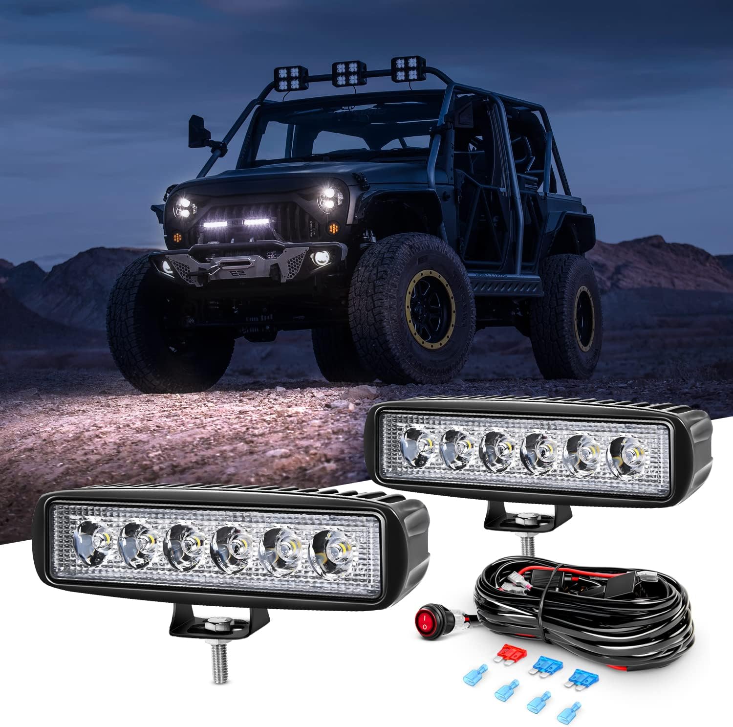 GOOACC 2 PCS 18w Spot Led Light Bar Work Light Pods Off Road Driving Light Fog Light Reverse Lights with 16AWG Off Road Wiring Harness-2 Leads for Truck Truck Boat SUV ATV, 2 Years Warranty
