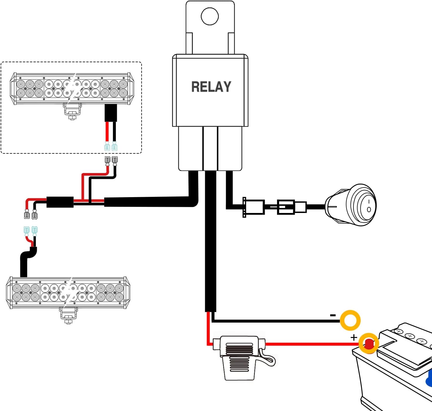 Good quality Wiring Harness: The led light bar wiring harness with relay and replaceable blade fuse, which has strong flexibility and corrosion resistance, high temperature resistance, compatible with all automobiles, boats and devices equipped with a 12 volt power source