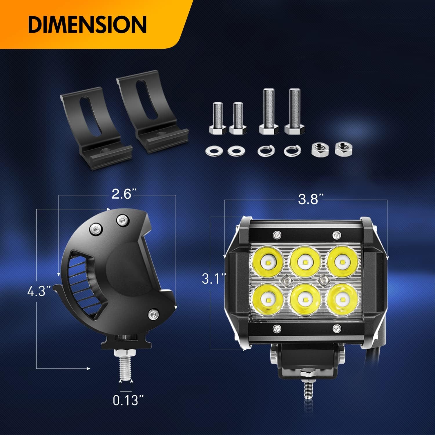 Package includes: 2Pcs 18W spot LED light bars+1Pcs wiring harness + 2pcs Mount Bracket Clamp Holder, 2 Years warranty honored by GOOACC