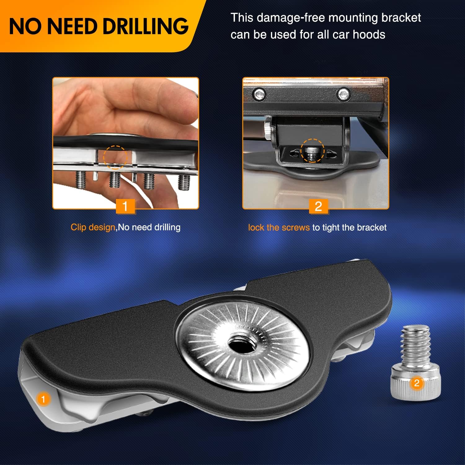 Anti-slip Surface Bracket: Made of 304 Stainless Steel, the surface contacting with the front cover of the car covers a multi-layer non-slip composite material and loss prevention materials to ensure that the contact surface of the bracket will not damage the car surface paint