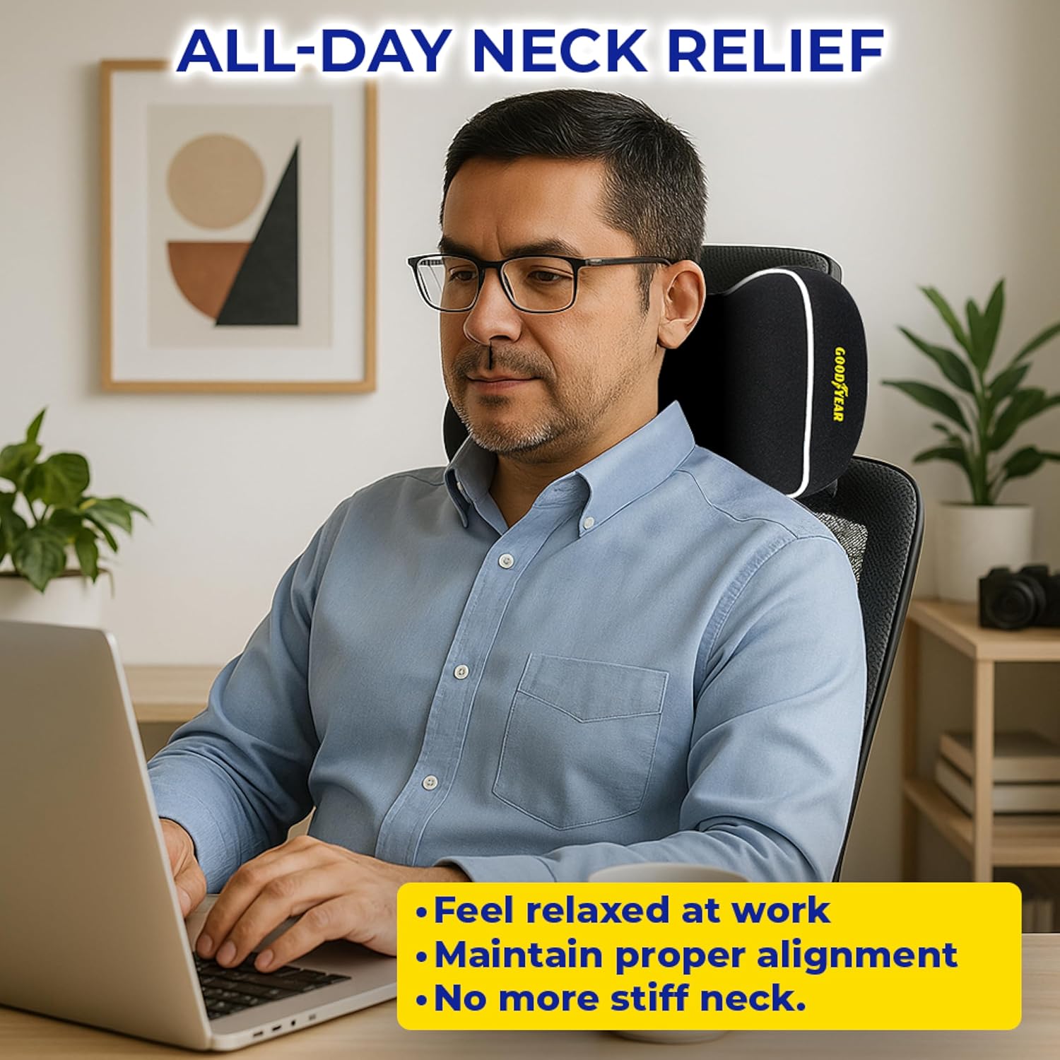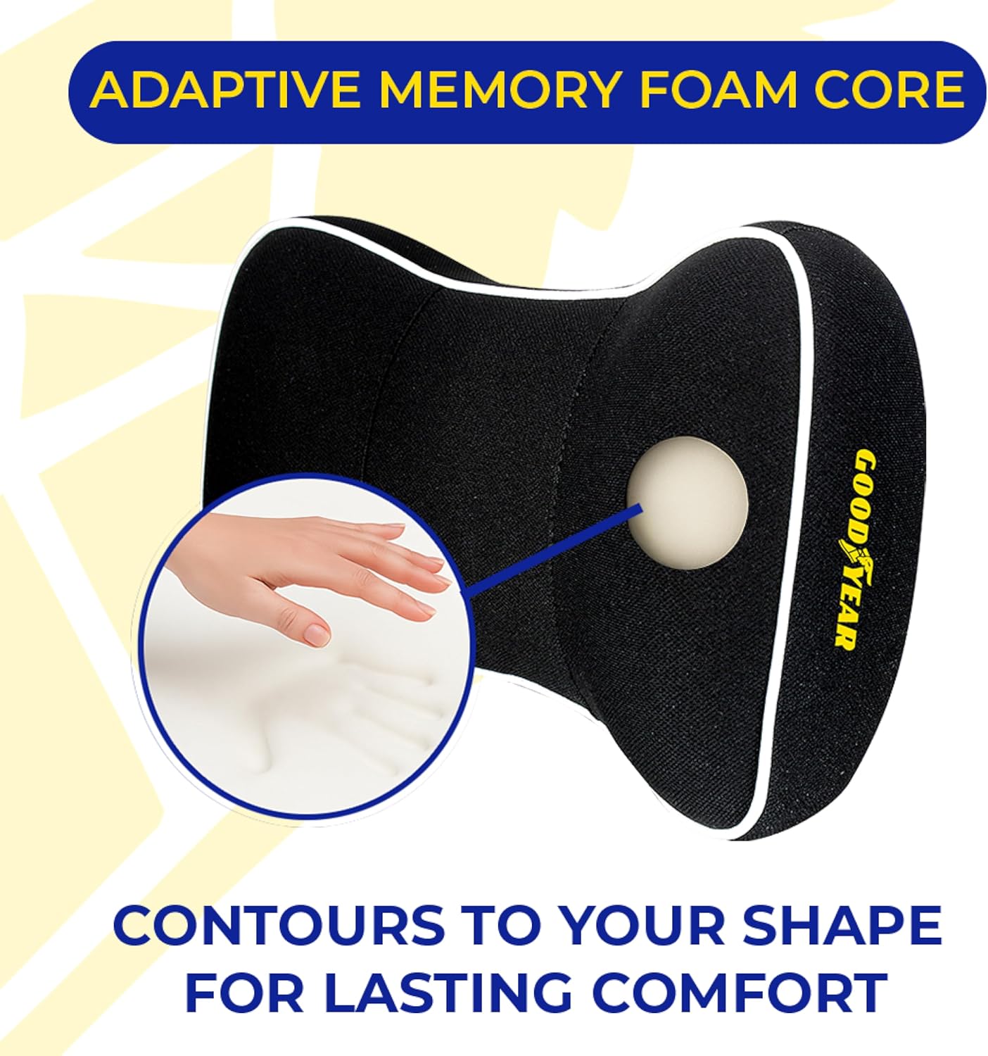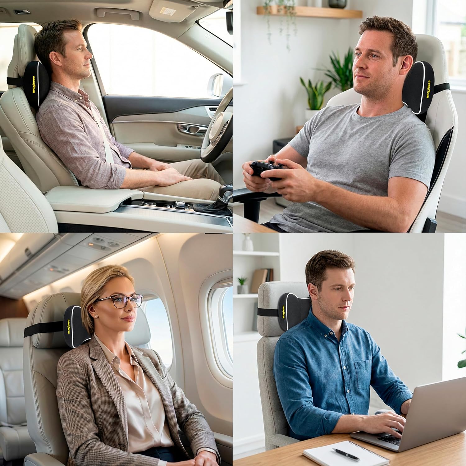 This is comfy but it’s also a smidgens too thick. I think if I took this apart and cut off like hmm 20 percent of the memory foam and re zipped it up, it would be better. I think for the price this is the best you can get though. The shape of my head rest is angled forward at the top and this pillow pops off a lot, which really limits its effectivenes. I really wish it would stay put better. The only economical solution to this I think is for Goodyear to have rubberized material printed on the underside of the strap. My cushion lab back cushion has that and well it helps keep that monstrous beast where I strapped it. I don’t make the products you buy. I just make them better…(basf) someone should really pay me to improve their products. Just saying. So I am disappointed I can’t get this to stay on the drivers head rest. I ended up putting it on the passenger seat headrest and whoever is tired in the car uses it for a nap, usually just removing it from the head rest. Although I did nap on it a bit with it strapped on the passenger seat. Even though it’s a good quality memory foam and product I don’t think I’d buy it again because well I had trouble keeping it in place and also it stuck too far forward which is admitably the fault of my 22 Kia Soul’s front seating. To be fair I have been un able to find a worthy replacement of this product. Using this Goodyear head rest pillow definitely would give me faith to purchase their back rests and seat cushions based on the quality of memory foam and density. However again I have Cushion Lab’s XL seat and normal back cushion which work really well together (by design it appears) they are probably a step above in quality of materials and a bit in design but also $70+ EA. Which is a lot more than Goodyears seat products. I think Good year stuff is a solid buy for most people. I just have some back problems that made me choose more posture oriented cushions that do not line up well with this neck pillow and my car’s seating. I even tried this reclined but I lose my back support to a degree so it’s not a great option.