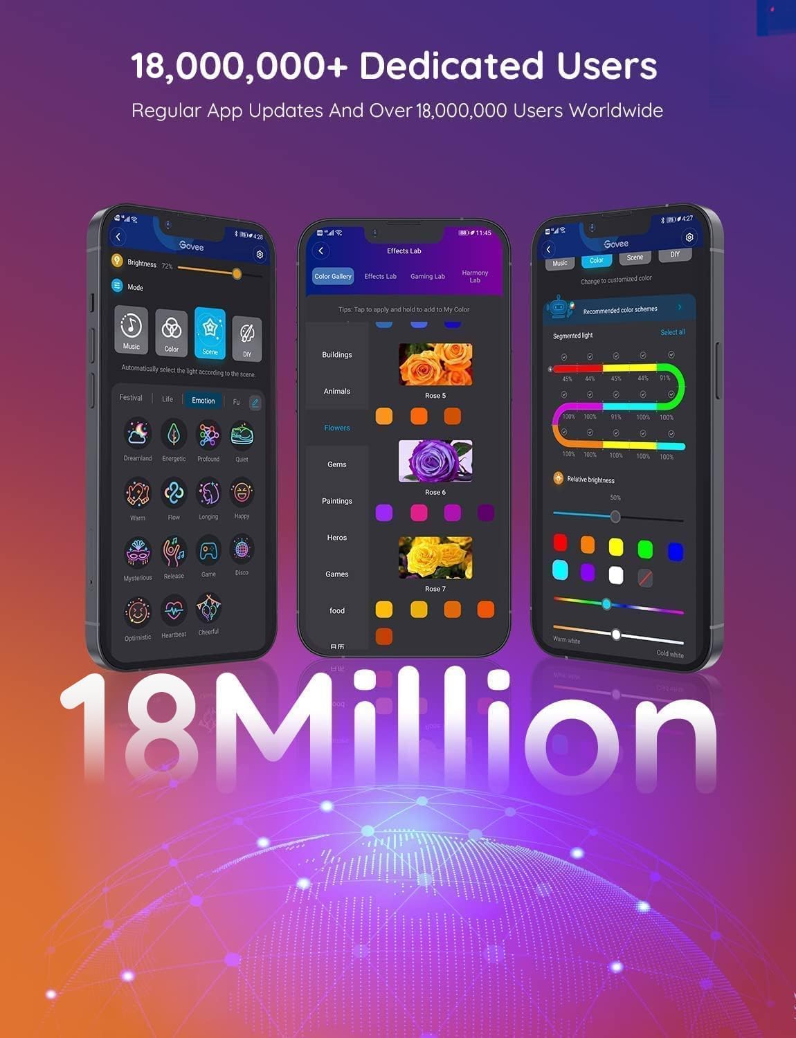 Smart APP LED Strips: Explore a variety of options, customizations, and community features in Govee Home App. Find updated effects and color tools, share and save user-created DIY effects, and try our AI-created themes from photo uploads.