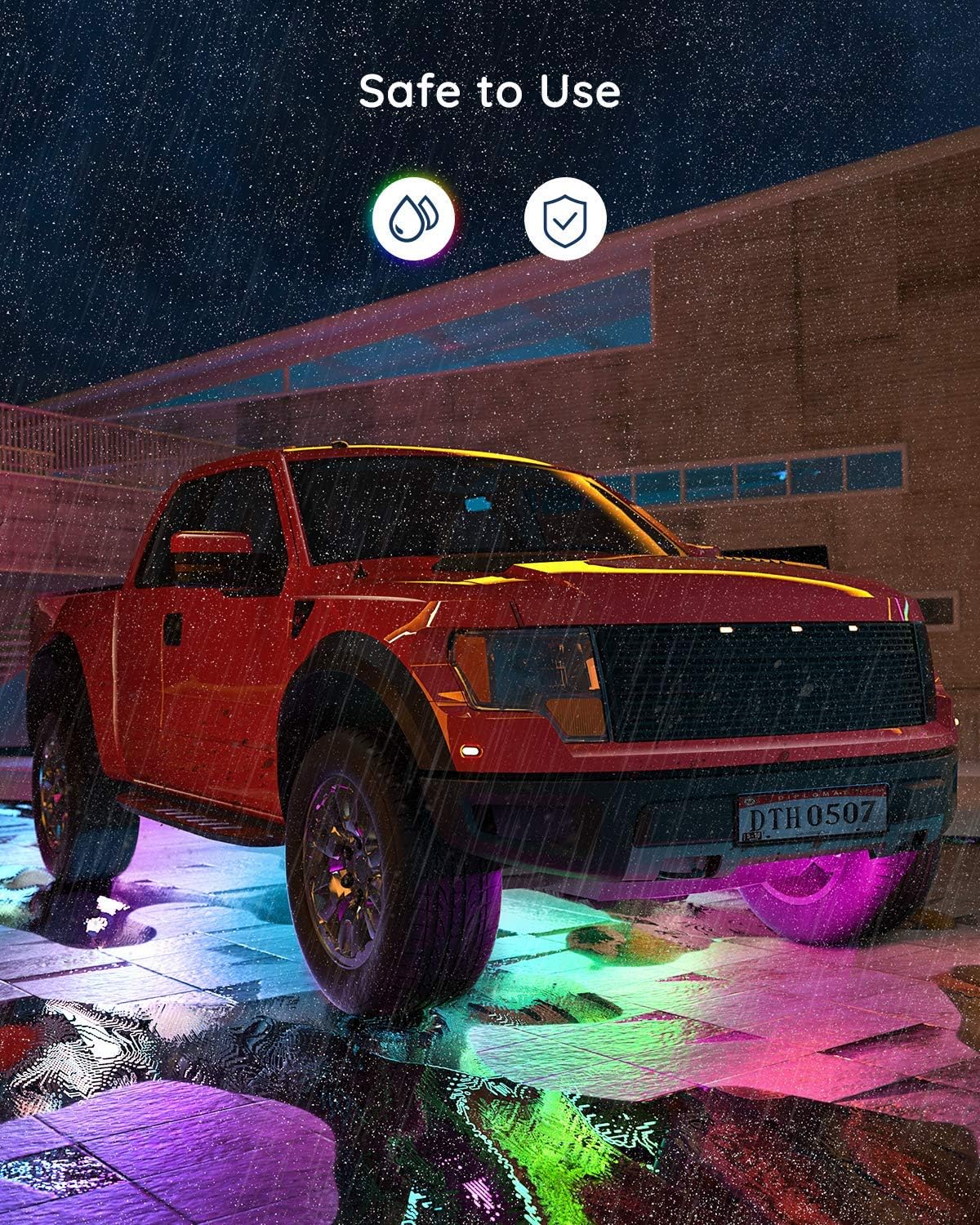 Safe to Use: Govee car lights equipped with a durable waterproof sleeve that protects them from road debris and rain can install with flexibility in various cars like SUVs and trucks. Plase use it within temperature range of -20°C to 80°C.