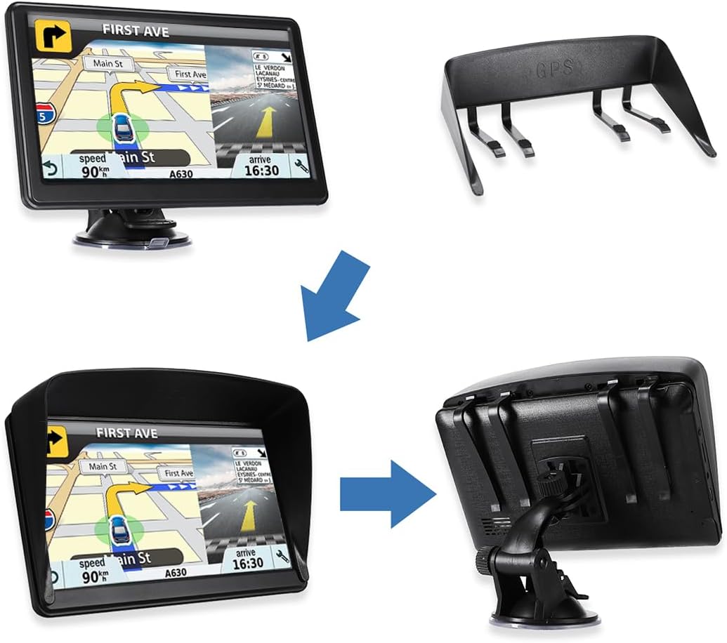 🚗【Intuitive Navigation & Routing Options】: Easily view maps and operate the system on a bright, responsive 7-inch HD touchscreen. Find destinations quickly via address, POI, zip code, or coordinates. Select optimal routes (Fast/Short/Green/Easy) and broadcast voice guidance clearly through your car stereo via the built-in transmitter.