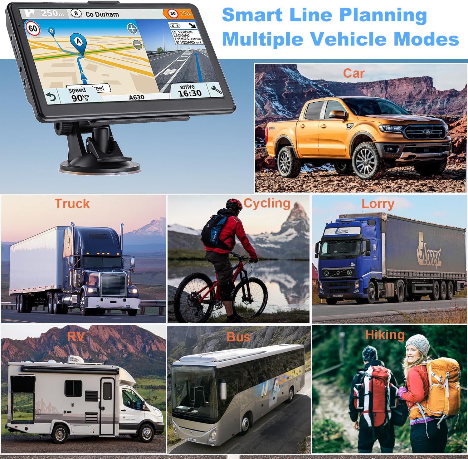 Support Postcode, Address, Coordinates and POI Search (Please refer to User Manual for details of using postcode search);Providing Intelligent Current Speed Camera Alerts, Sound Warning, Route Planning, Street Names Broadcast, Current Speed and Active Lane Assistant, Display Remaining Distance, telling Estimated Arrival Time;Various Route Planning: Fast, Green, Economical and Easy;Provide real voice broadcast with over 40 languagesProvide 7 vehicle modes betwe;With Latest GPS Chipset, Excellent in receiving signal, fast and accurate position fixing, GONGUP provides you the satisfied navigating serviceEntertainment: MP3 and MP4 function can relieve your fatigue