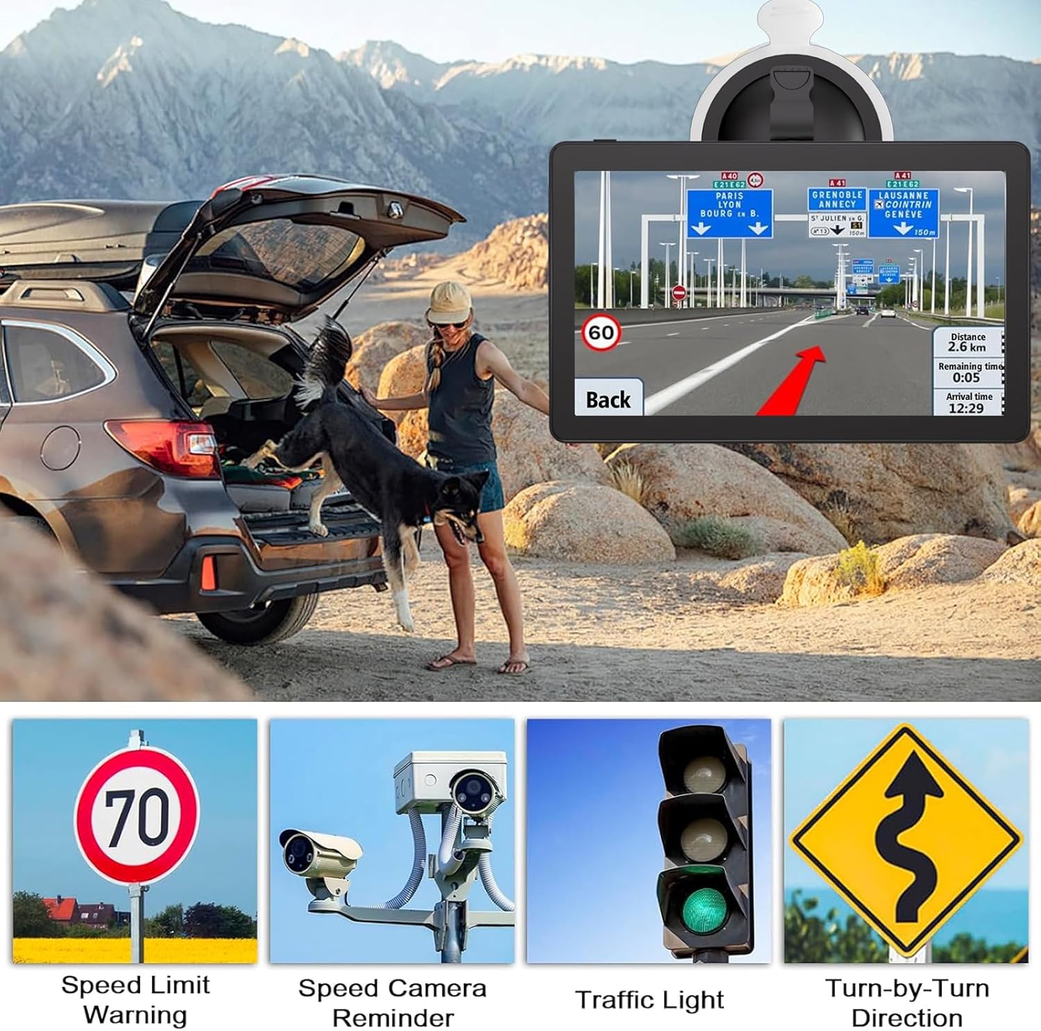 【Smart Voice Broadcast Reminde】GPS System With Turn-By-Turn Voice Navigation (Multi-Language Version), Comprehensive Voice Prompts, Prompt Real-Time Safety Navigation Direction Of Progress; Intelligent Error Correction, If The Route Is Wrong, The System Will Automatically Generate New Routes To Make Your Faster And More Secure , More Accurately Reach Their Destination