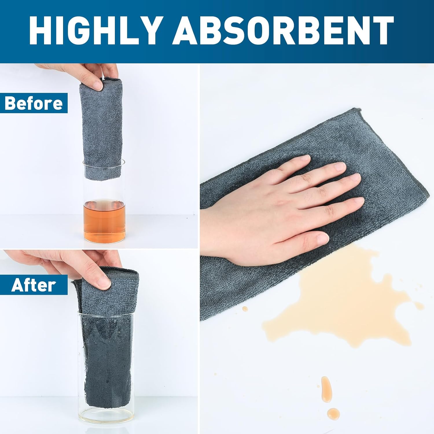 【Easy Maintenance and Use 】Our bulk microfiber towels come in grey and are crafted with high-quality fabric and sewn edges, providing a soft and scratch-free feel. They are easy to maintain and perfect for keeping both your car and home spotless.
