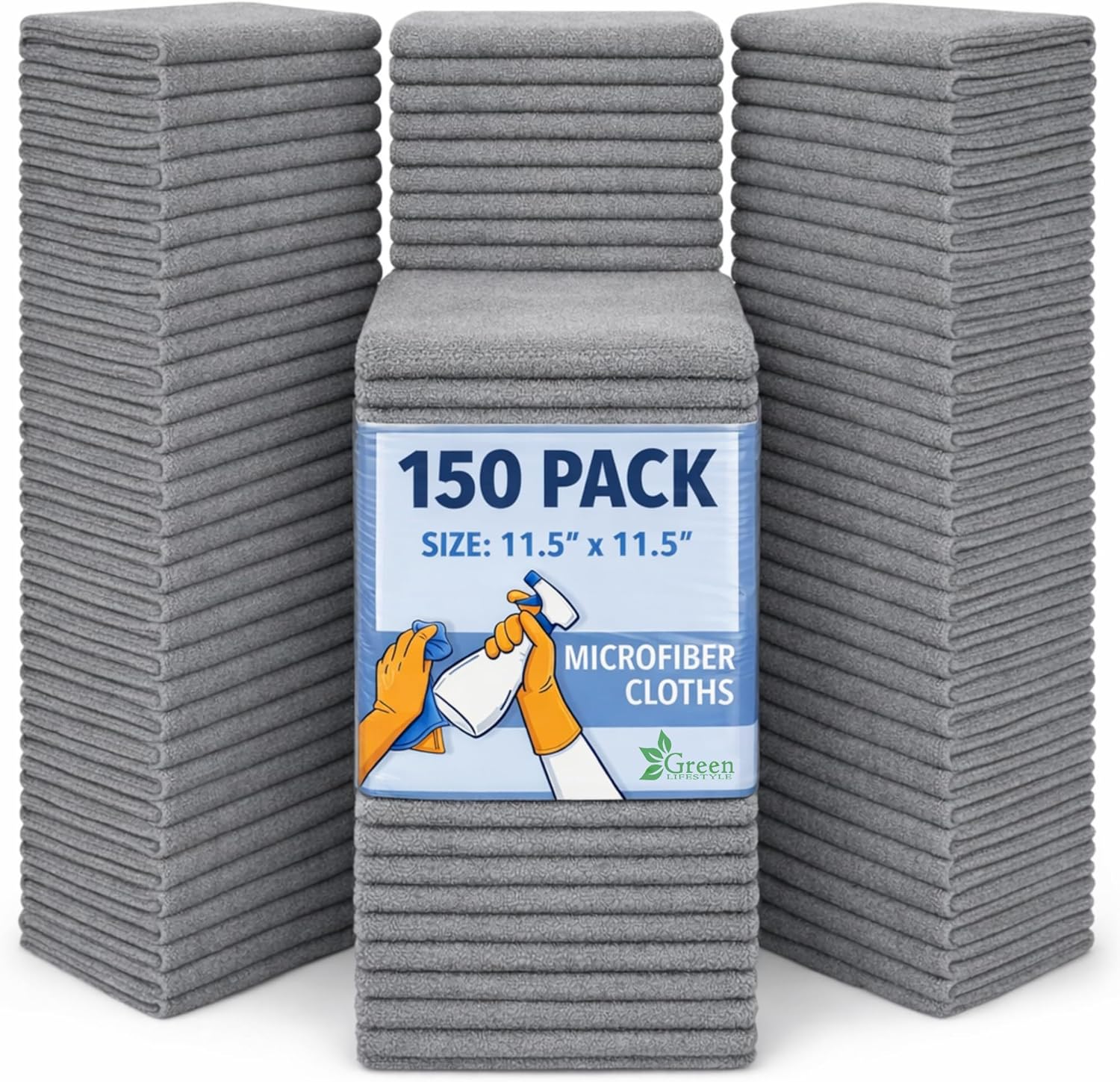 GREEN LIFESTYLE Chamois Cloth, Microfiber Cleaning Cloth 150 Pack, Borderless Towels Cleaning, Car Microfiber Towel, Drying Car Wash Towels (11.5″ x 11.5″, Grey)