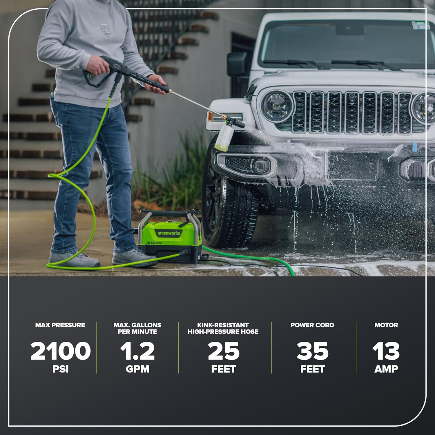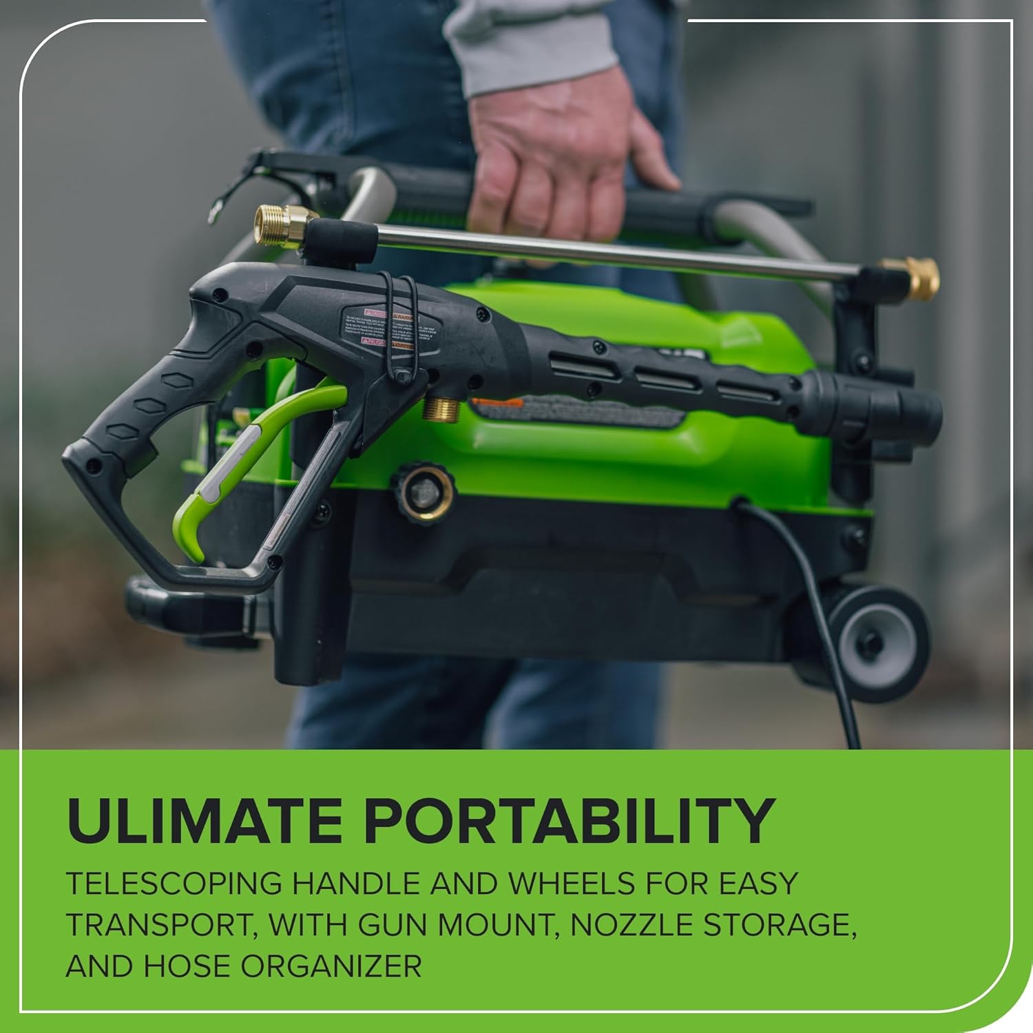 Greenworks 2100 PSI (SGS Certified) 1.2 GPM 13Amp Compact Electric Pressure Washer Telescoping Handle Power Washer for Cars, Driveways, Patios, Patio Furniture & Around Pools