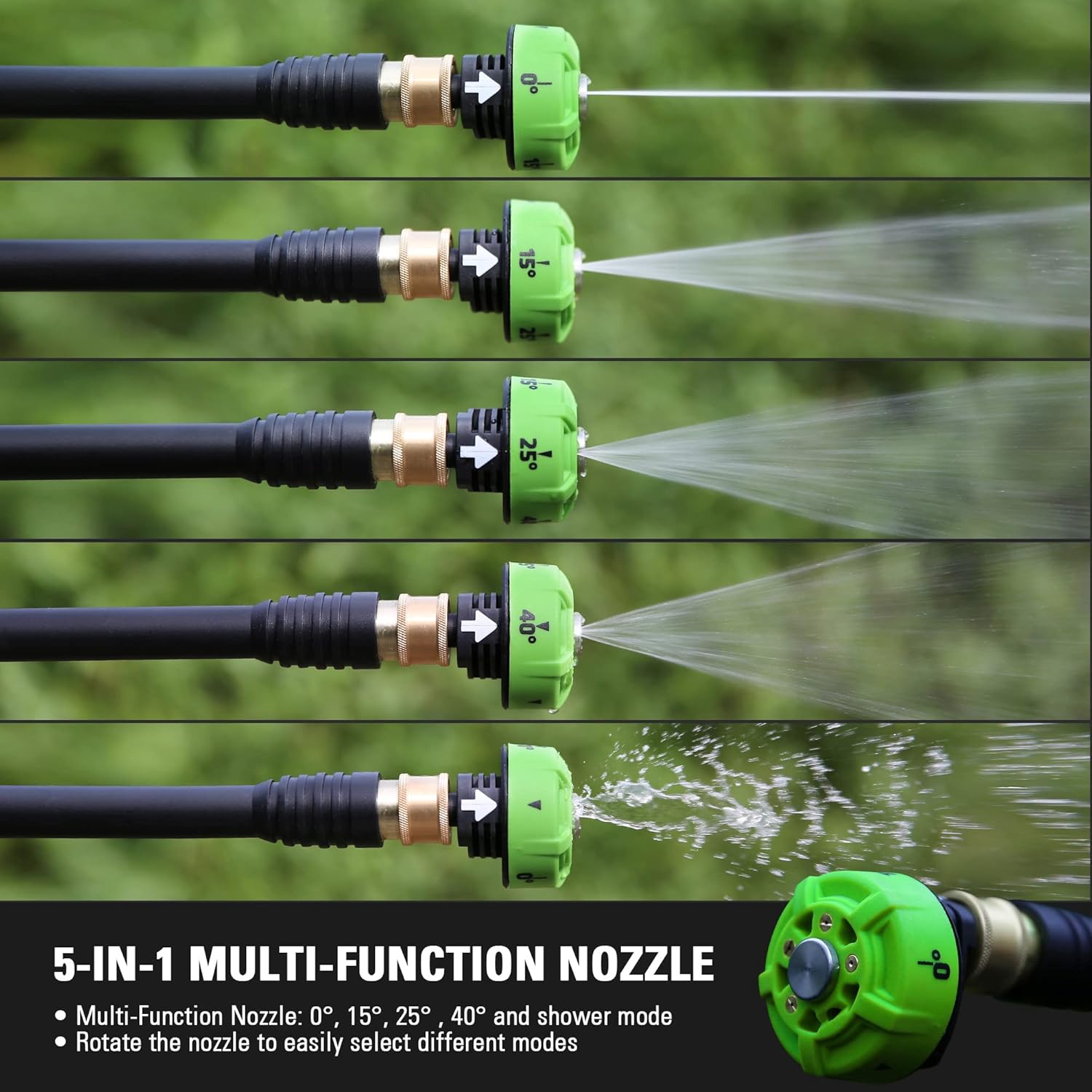 ADJUSTABLE NOZZLE: This pressure washer comes with a 5-in-1 selectable spray pattern, providing you with options for various cleaning tasks. You can switch between 0º,15°, 25º, 40º, and watering spray patterns as needed. The product is PWMA certified, ensuring quality and performance.